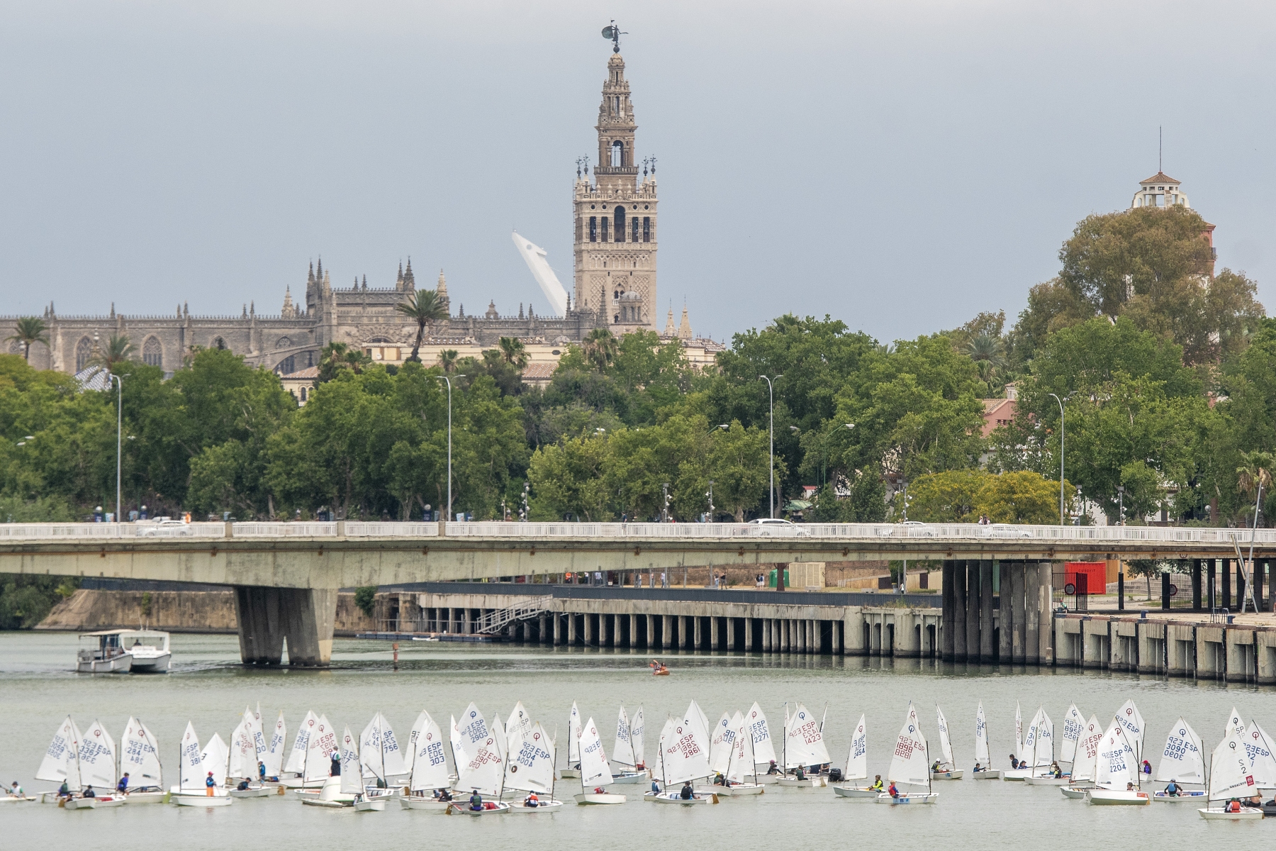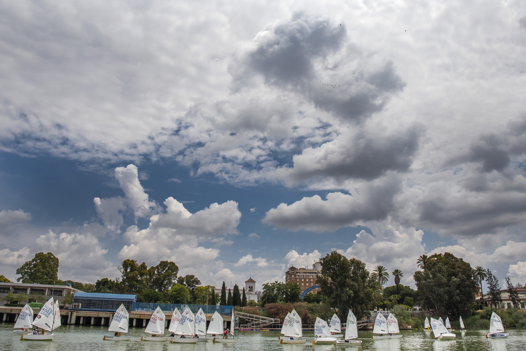 El 45º Trofeo Club Náutico Sevilla de la clase Optimist se ha celebrado este fin de semana en la dársena del Guadalquivir de la capital hispalense con rango de Campeonato de Andalucía de aguas interiores. Unos 80 regatistas procedentes de 11 clubes de Sevilla, Cádiz, Huelva, Málaga y Almería han tomado parte en una competición marcada por las exigencias meteorológicas. De hecho, las tormentas y el escaso viento caracterizaron una primera jornada en la que sólo se pudo disputar una manga, ampliadas con dos más en el cierre, en el que la lluvia se ausentó hasta la entrega de premios y el viento sopló con rachas de hasta 6 nudos.