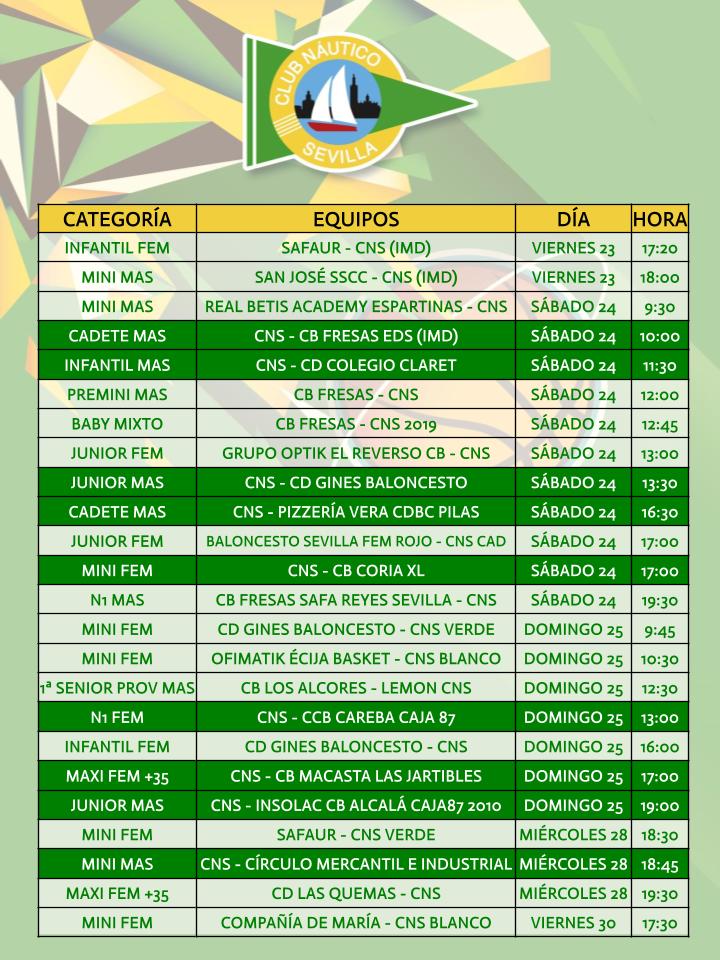 Partidos programados del viernes 23 al viernes 30 de enero por los equipos del Náutico en las competiciones nacionales y provinciales.