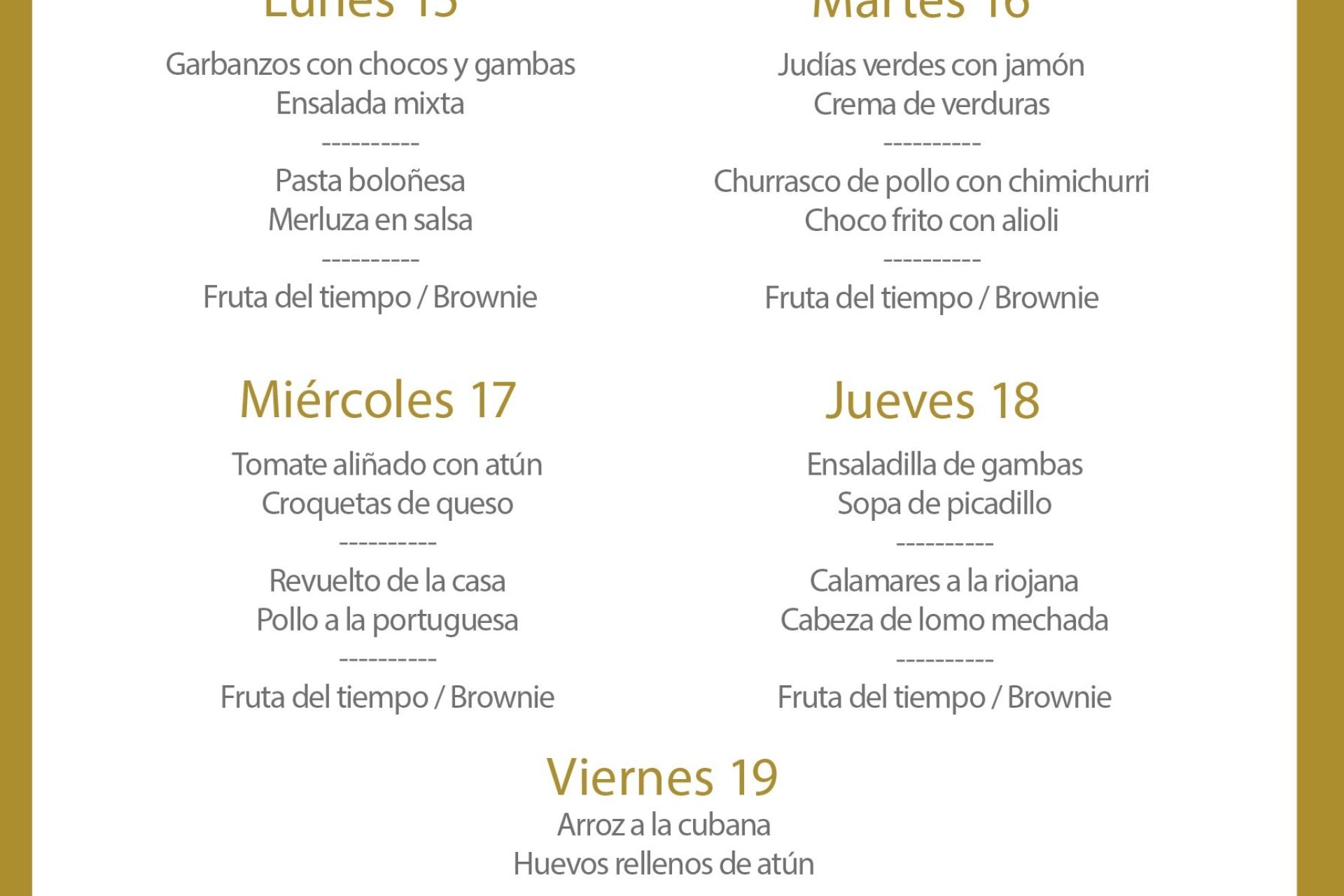 Menú disponible a mediodía del lunes 15 al viernes 19 de enero en la planta alta del salón social al precio de 9€/persona (IVA, pan/picos y una bebida incluidos).
