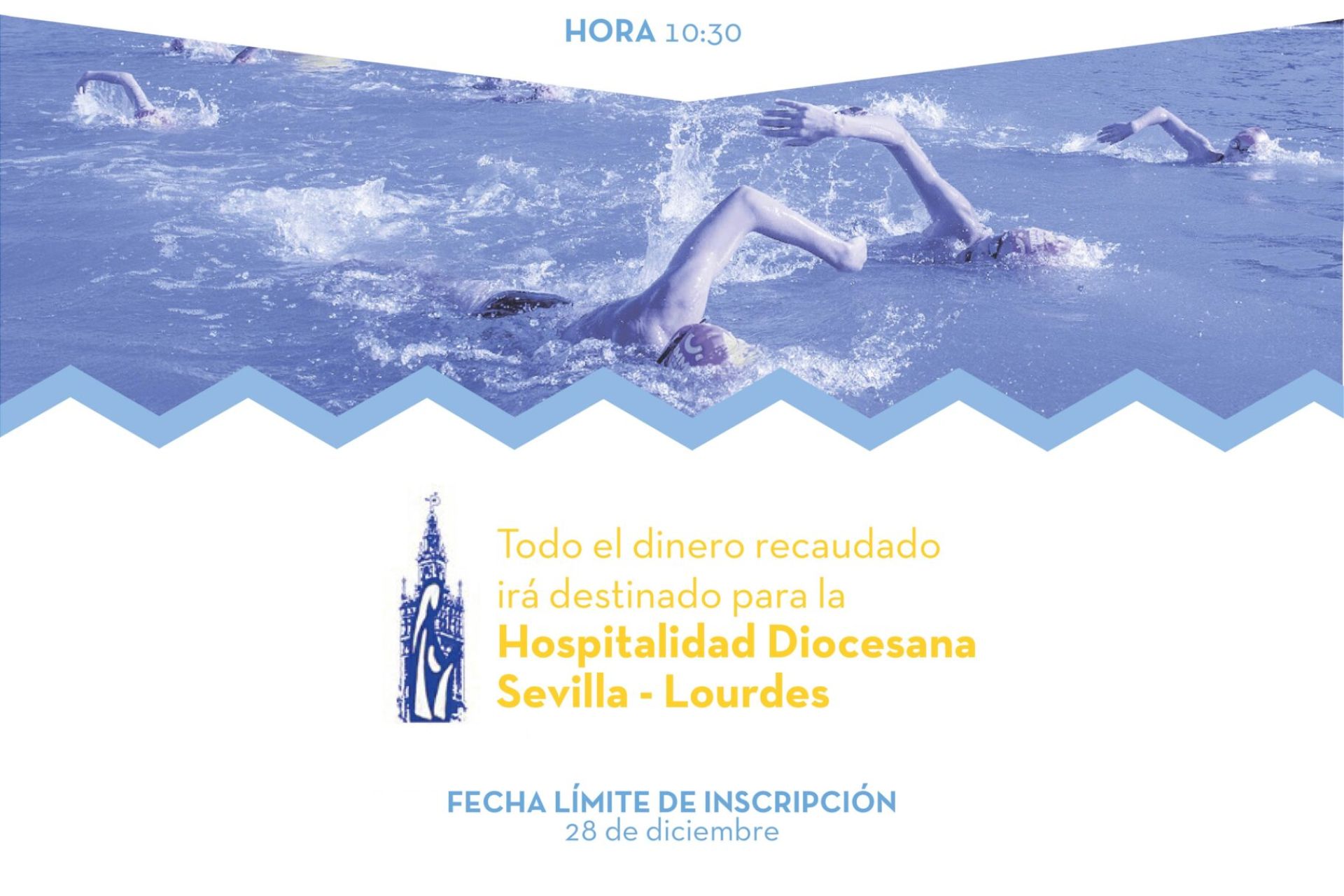 Este miércoles, 28 de diciembre, acaba el plazo de inscripción para la prueba de natación a disputar el sábado 31 a las 10:30 h sobre 500 metros en el Guadalquivir a beneficio de la Hospitalidad Diocesana Sevilla-Lourdes.