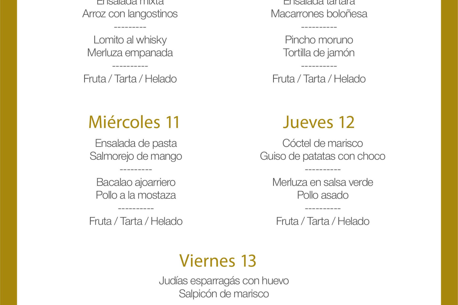 Menú intersemanal del servicio de restauración del Club Náutico