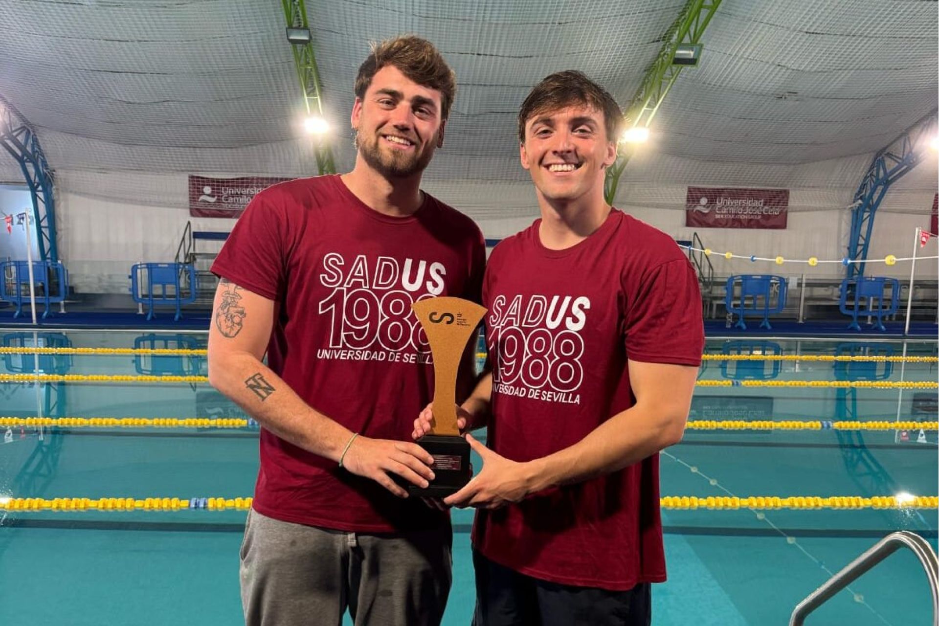 Los nadadores del Club Náutico Rafael Pablo García y Francisco Parra, terceros en la cita nacional de Madrid con la Universidad de Sevilla.
