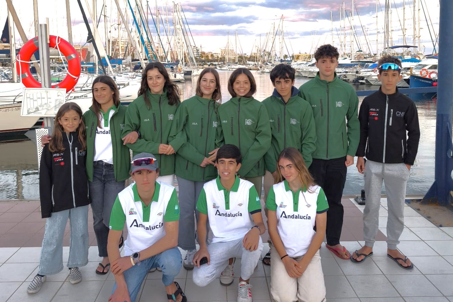 Corona nacional de Techno en Santa Pola (Alicante) para los windsurfistas del Club Náutico Sevilla Olivia Sánchez Moral (sub15) y Beltrán Parrado (sub17), subtítulo para Curro Llorca (sub17) y bronce de Julia García (sub13).