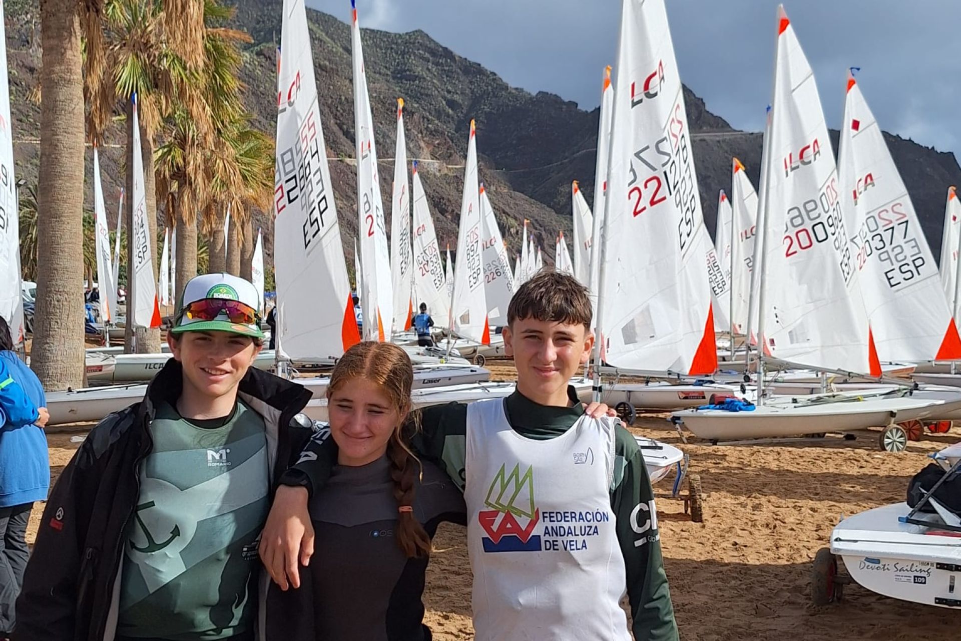 La flota del Club Náutico Sevilla, representada en aguas de Tenerife por Alfonso Murube (12º sub16), Jaime Abad (22º sub16) y Beatriz Serrano (13ª sub16).