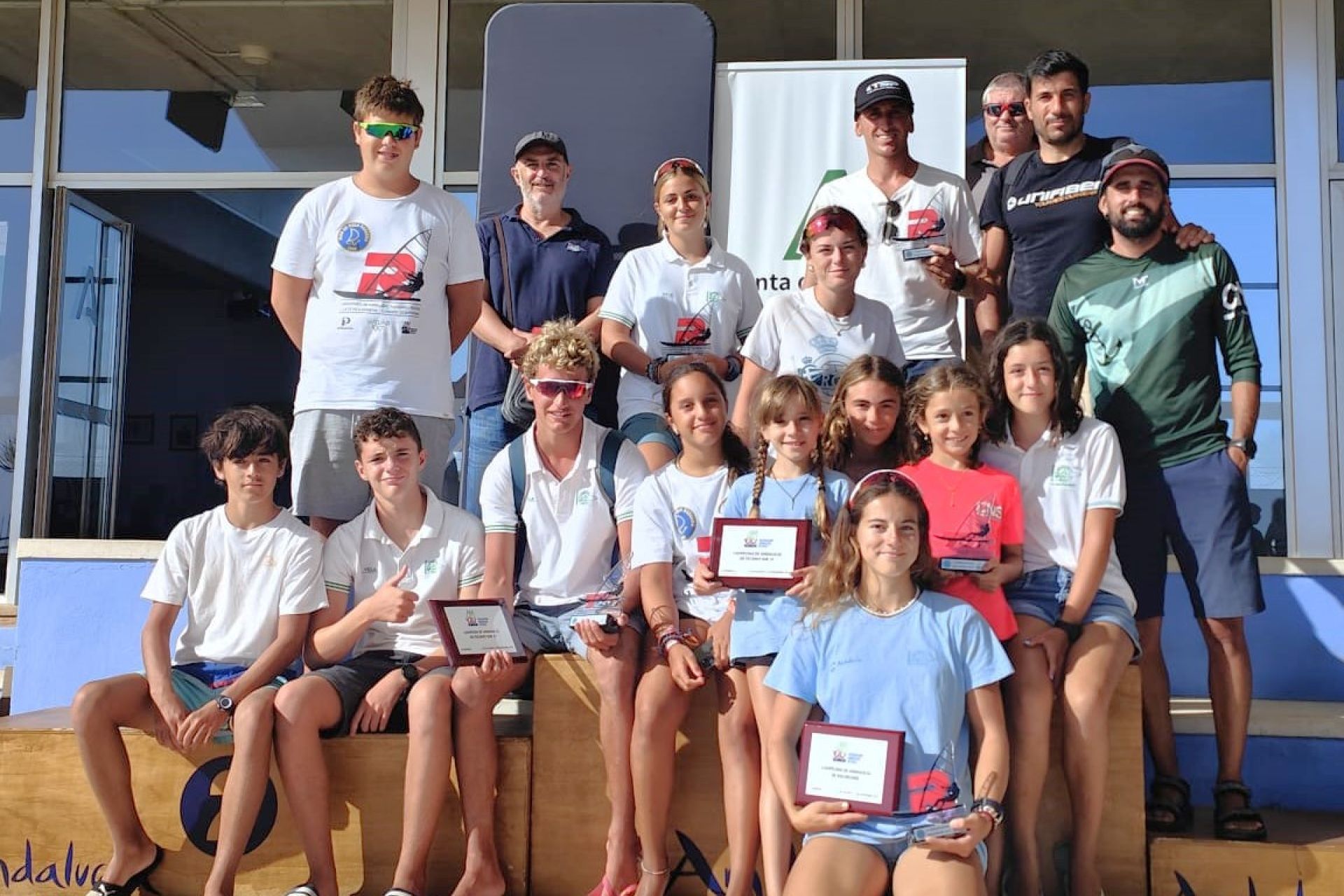 Cuatro podios para la flota el Náutico Sevilla en la cita inaugural de Almería con Miguel Ángel Cervantes y Elena Delgado, campeón y tercera sub16; Petra Murube y Julia Delgado, campeona y subcampeona sub11.