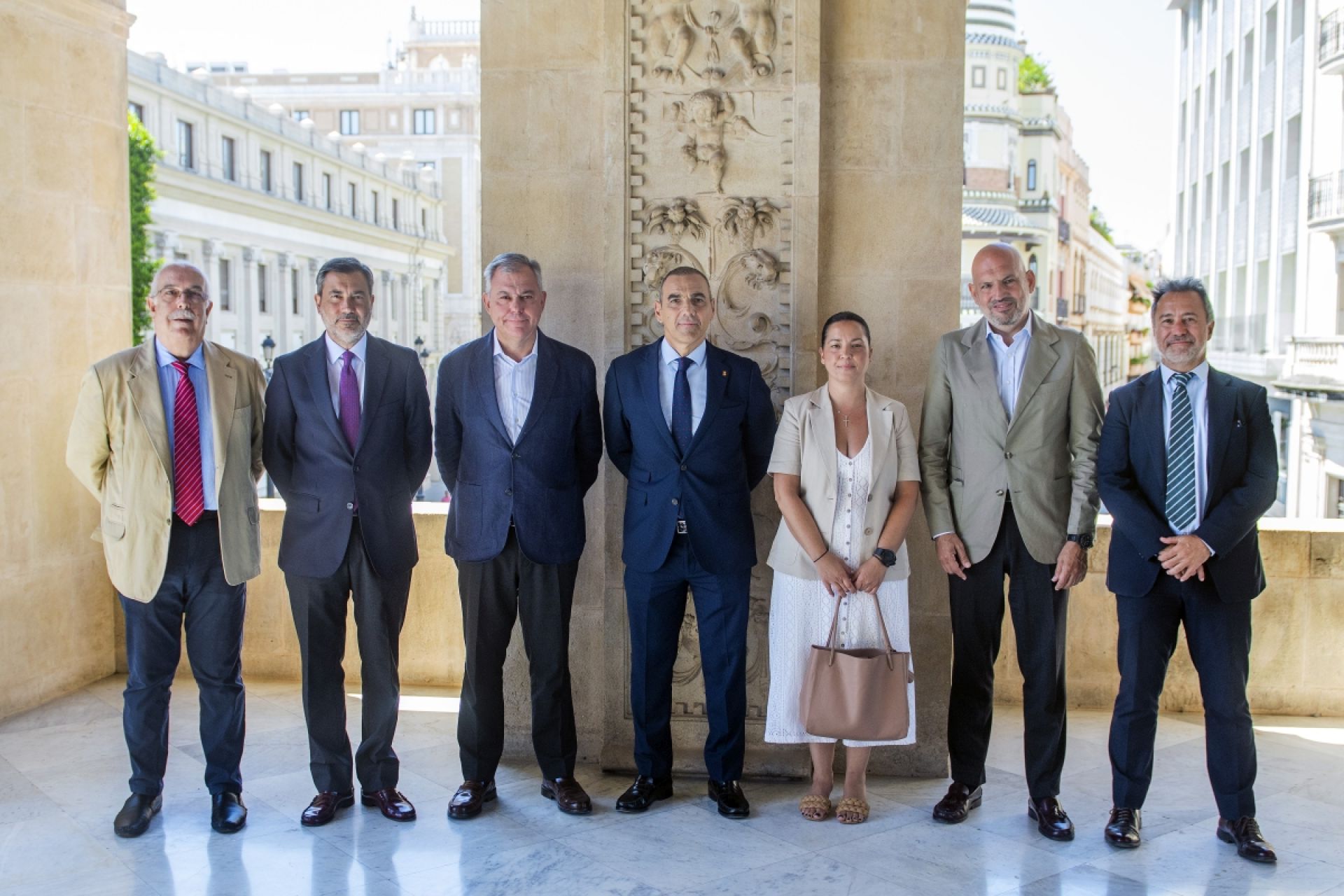 Cayetano García de la Borbolla Vallejo y la nueva Junta directiva, recibidos en el Ayuntamiento de Sevilla por el alcalde de la ciudad, José Luis Sanz.
