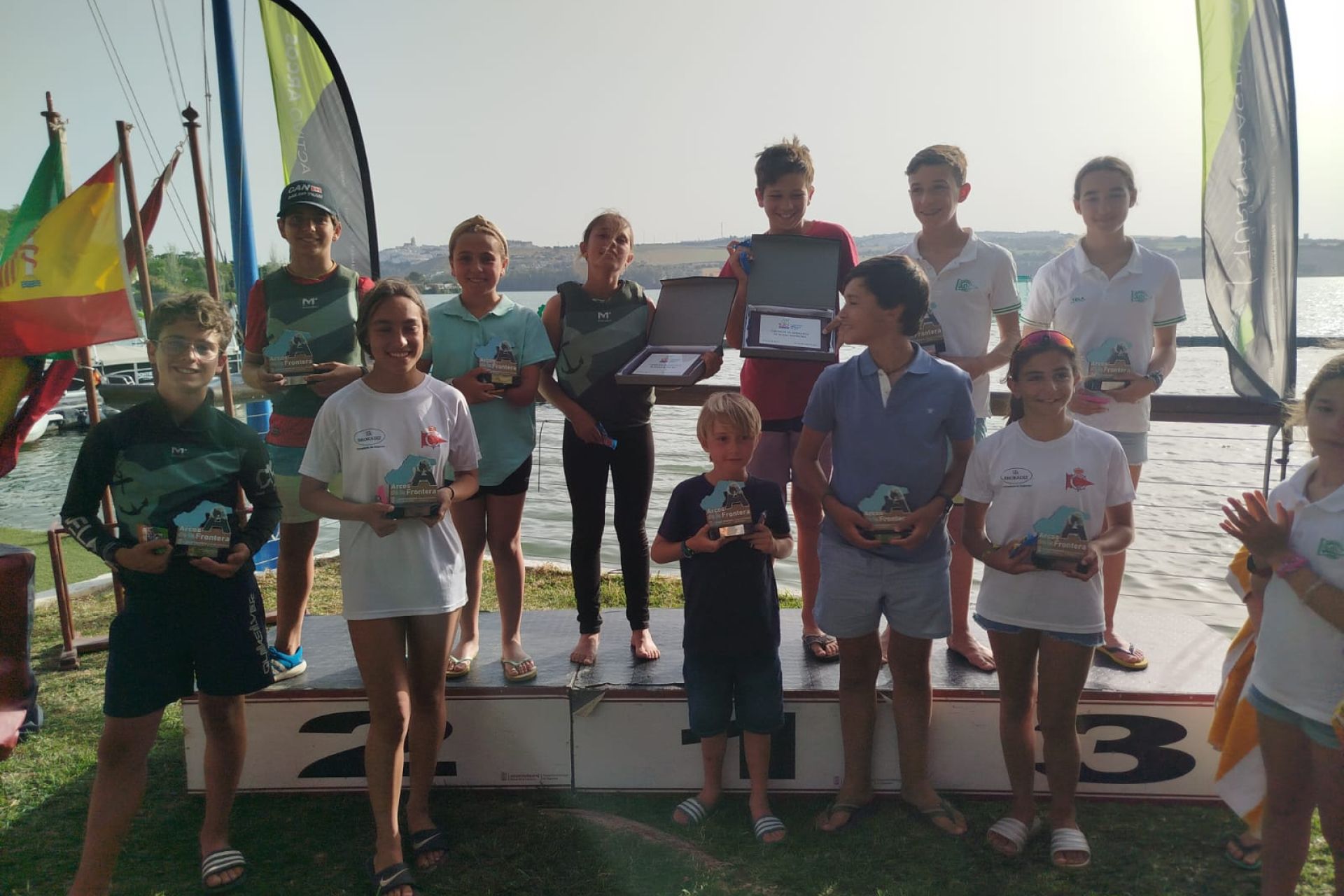 Pleno de la flota del Club Náutico Sevilla en el lago de Arcos de la Frontera (Cádiz), con triunfos absolutos de Ignacio Murube y María de las Mercedes Medel, Miguel Cervantes y Elena Delgado entre los sub16 y la sub11 Petra Murube.