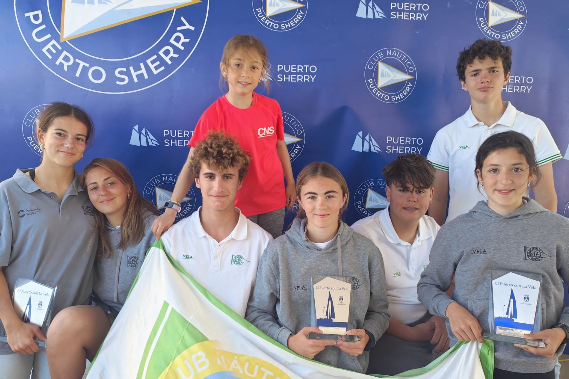 Siete podios para la flota del Náutico Sevilla en El Puerto, con triunfos de Olivia Sánchez, Curro Simbad Llorca, Curro y Paco Manchón y Eloísa Tarancón, subtítulo de Claudia Cardosa y tercer puesto para Ana García.