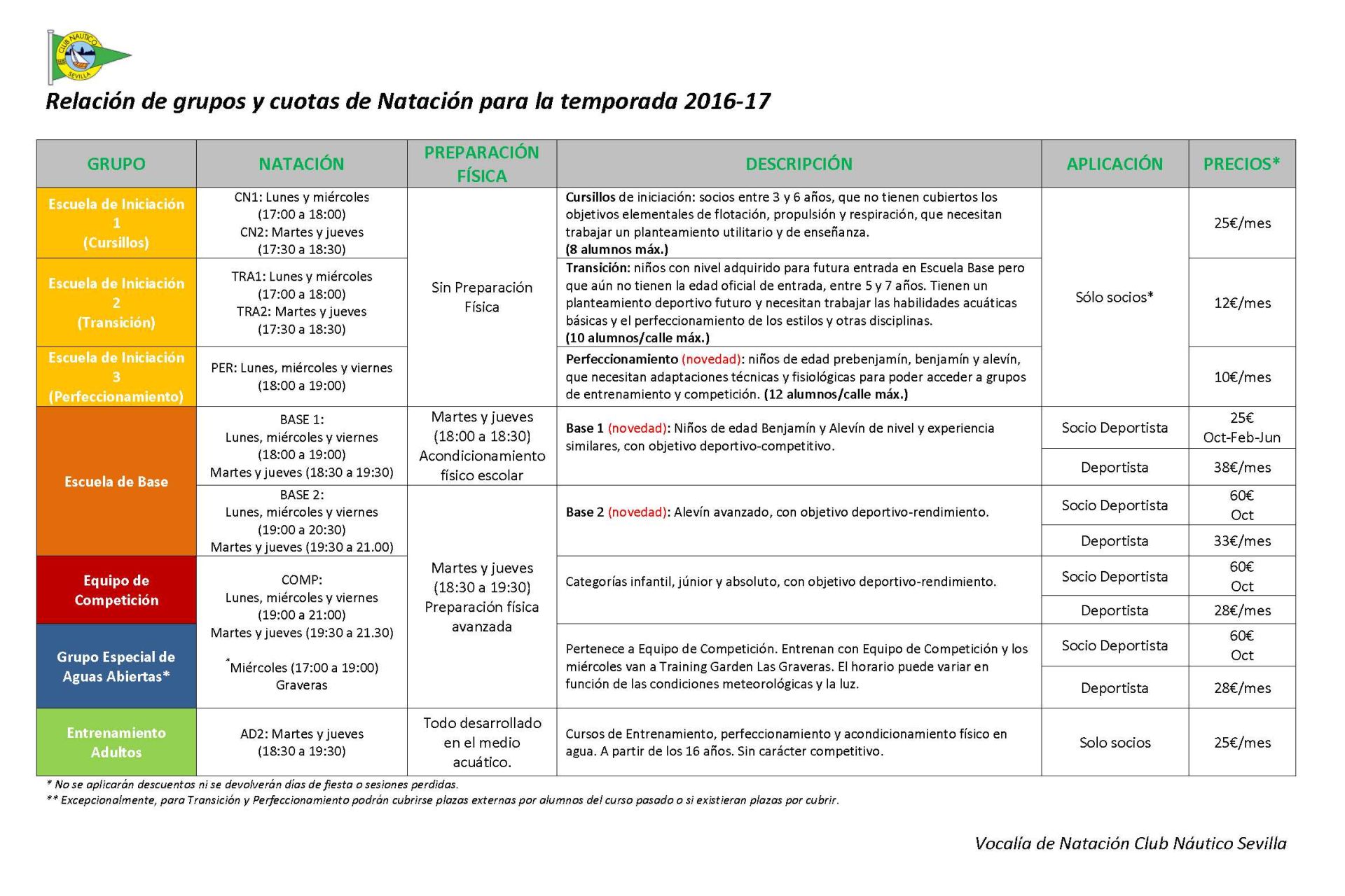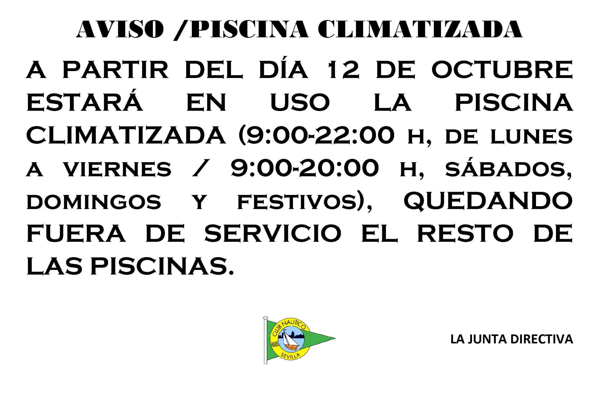 Horarios de otoño del Club Náutico Sevilla