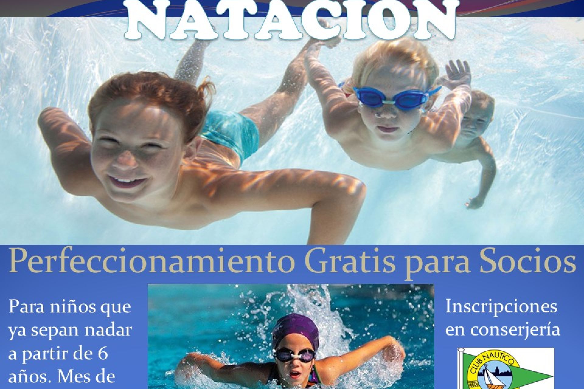 Cursillos de perfeccionamiento para niños a partir de 6 años que sepan nadar, de lunes a jueves en la piscina olímpica de 18:00 a 19:00 horas / FORMULARIO DE INSCRIPCIÓN