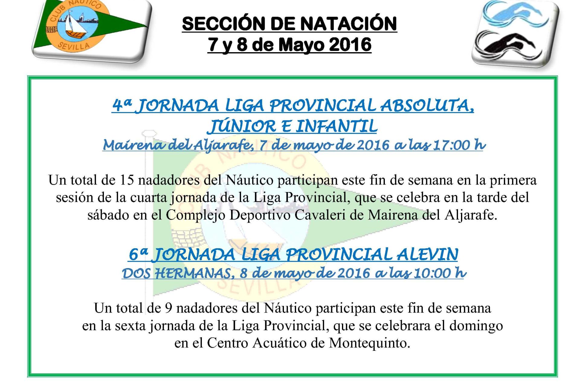 Exitosa ha sido la participación del Club Náutico Sevilla en la primera sesión de la cuarta jornada de la Liga Provincial absoluta, júnior e infantil de natación, celebrada el pasado fin de semana en Mairena del Aljarafe. Hasta nueve triunfos lograron los nadadores de Manuel Ángel Calero en una cita disputada en piscina de 25 metros en la que se consiguieron también hasta 32 mejores marcas personales. Además, el 4×200 libres femenino logró la mínima para el Campeonato de España infantil, a la que se unían otras siete para el Andaluz absoluto y seis para la cita regional infantil de verano.