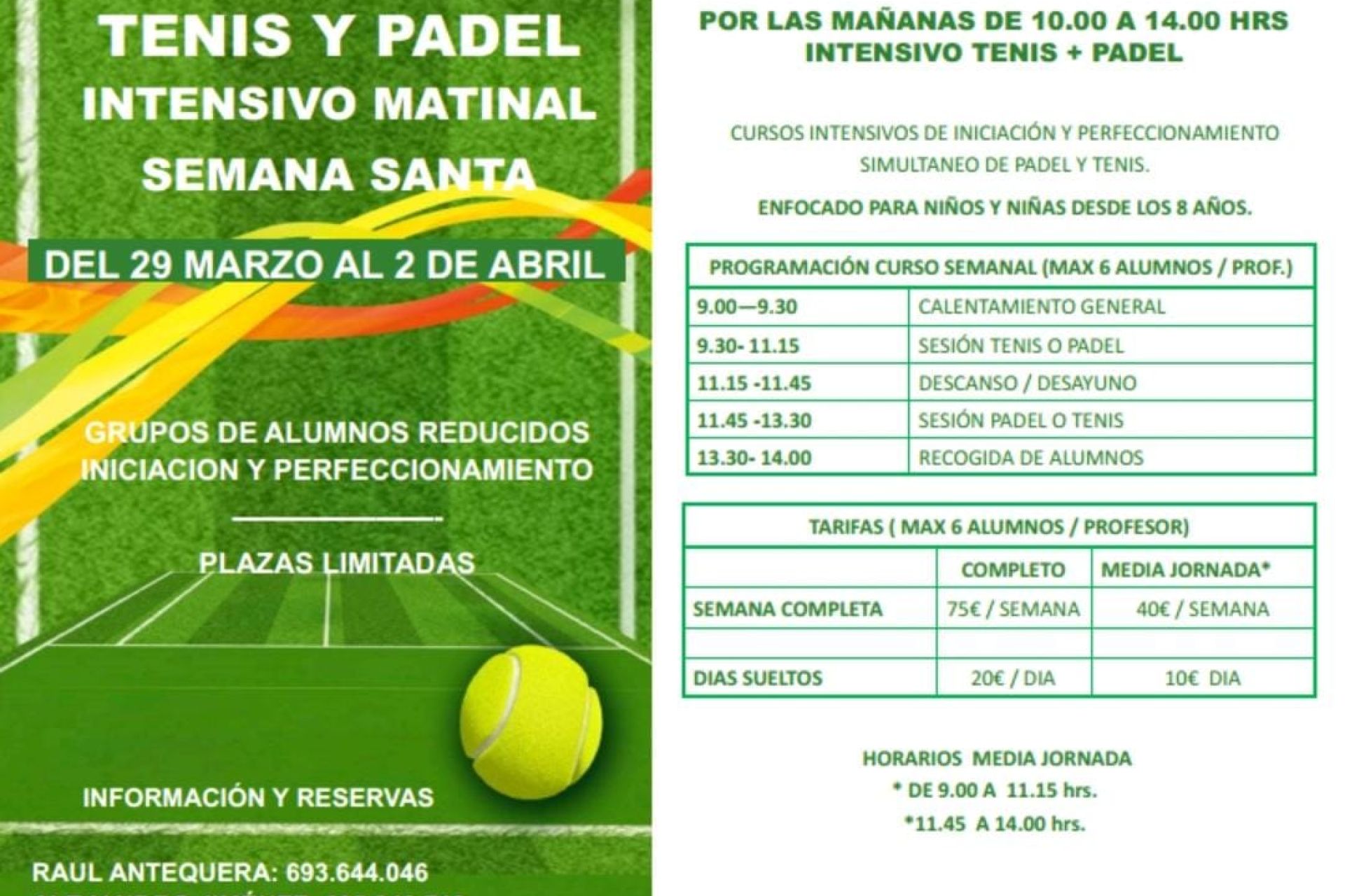 Cursos intensivos de tenis y pádel en Semana Santa
