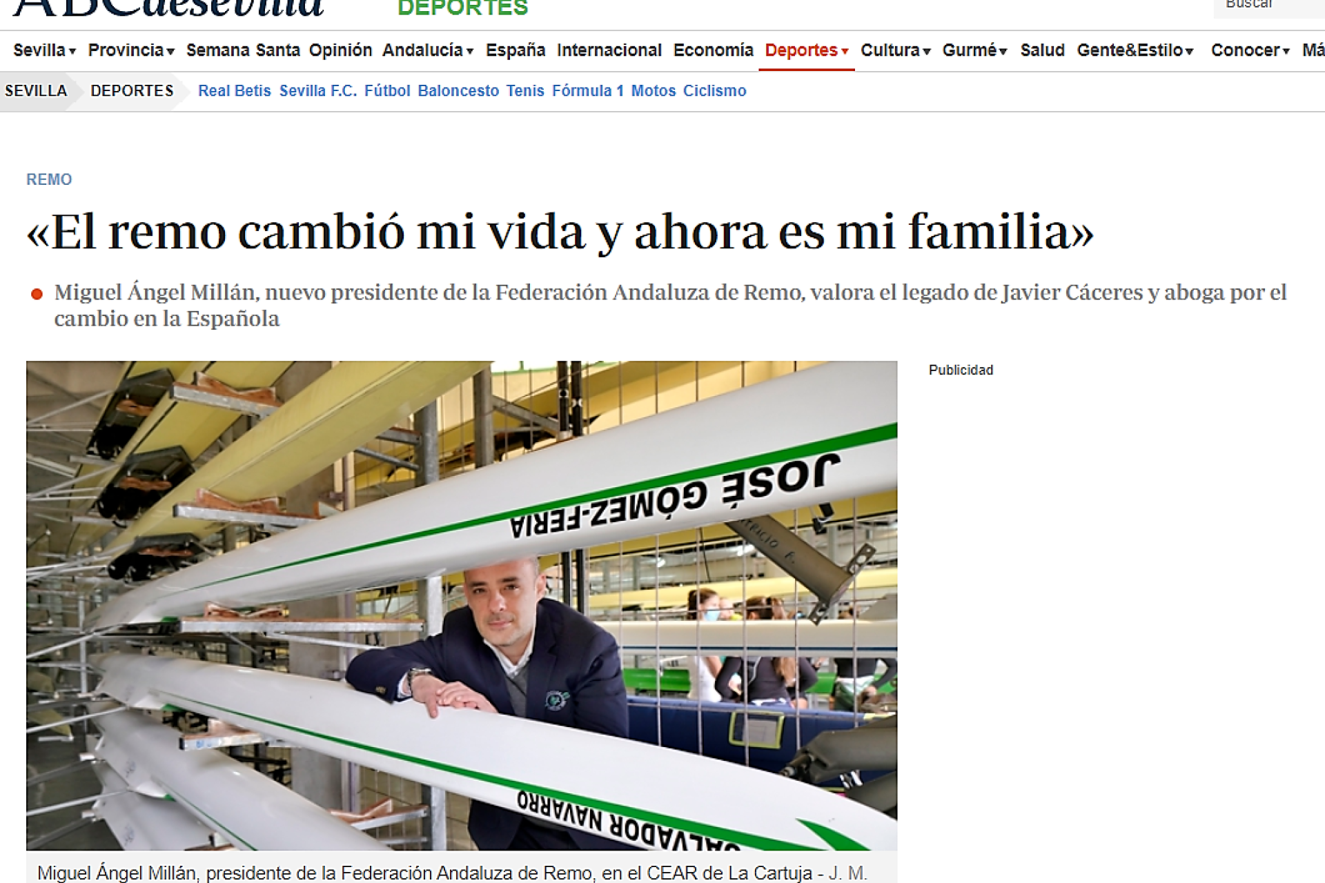 Entrevista publicada en el diario ABC de Sevilla al socio del Club Náutico Sevilla y nuevo presidente de la Federación Andaluza de Remo. Por Mateo González.