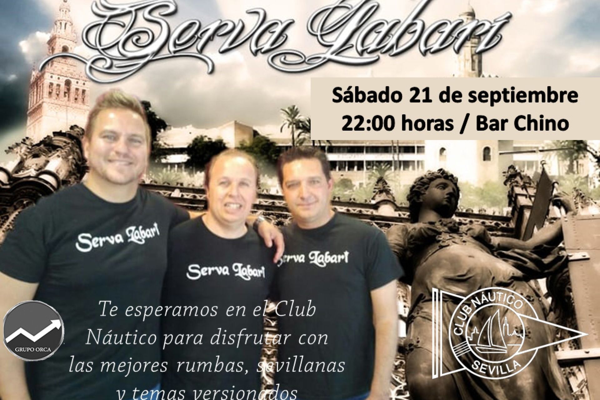 Disfruta en el Club Náutico este sábado, día 21 de septiembre, a partir de las 22:00 h en el Bar Chino con las mejores rumbas, sevillanas y temas versionados de la mano del grupo ‘Serva Labari’. #somosnáutico