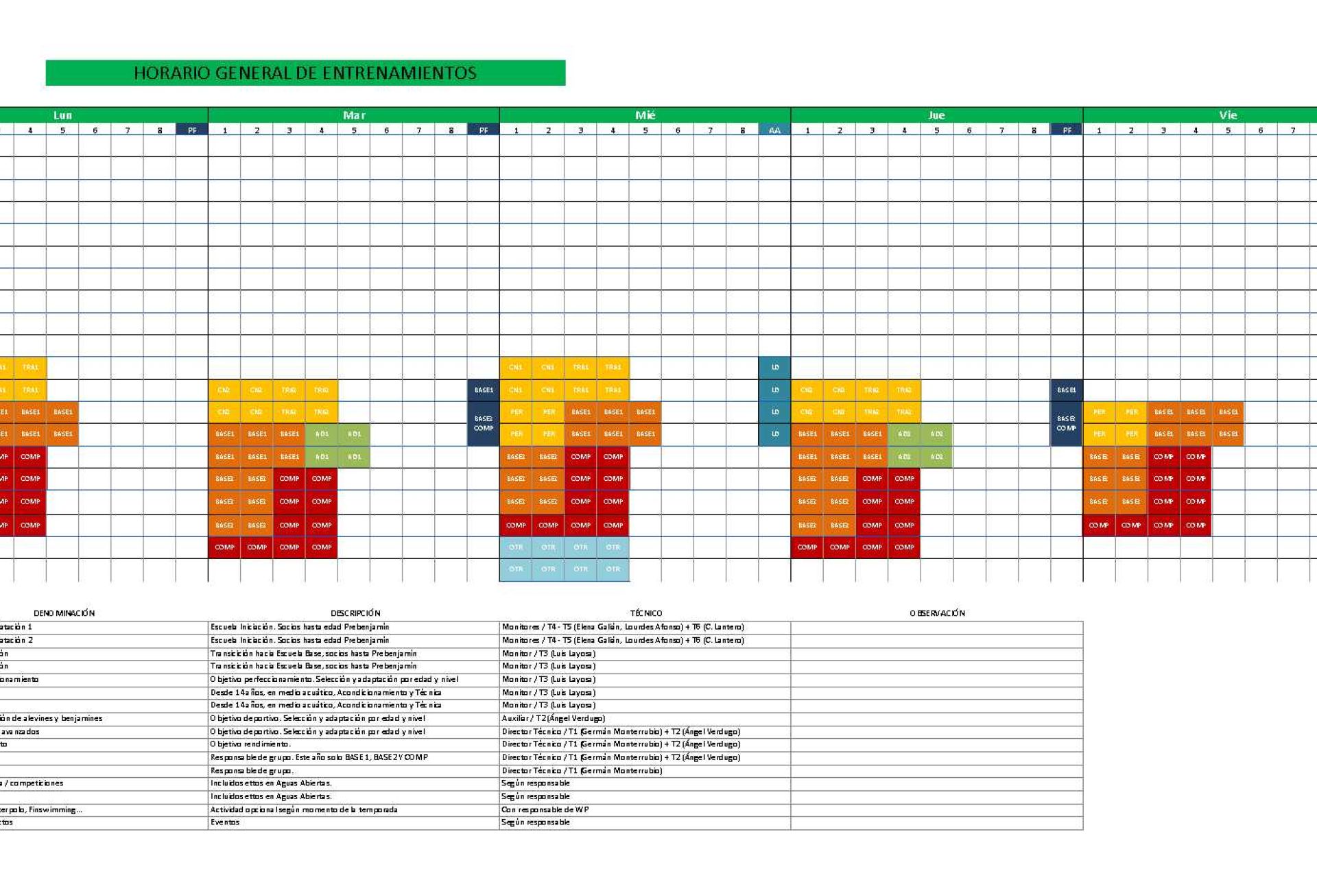 Horarios de entrenamientos de la sección de natación y disponibilidad de calles