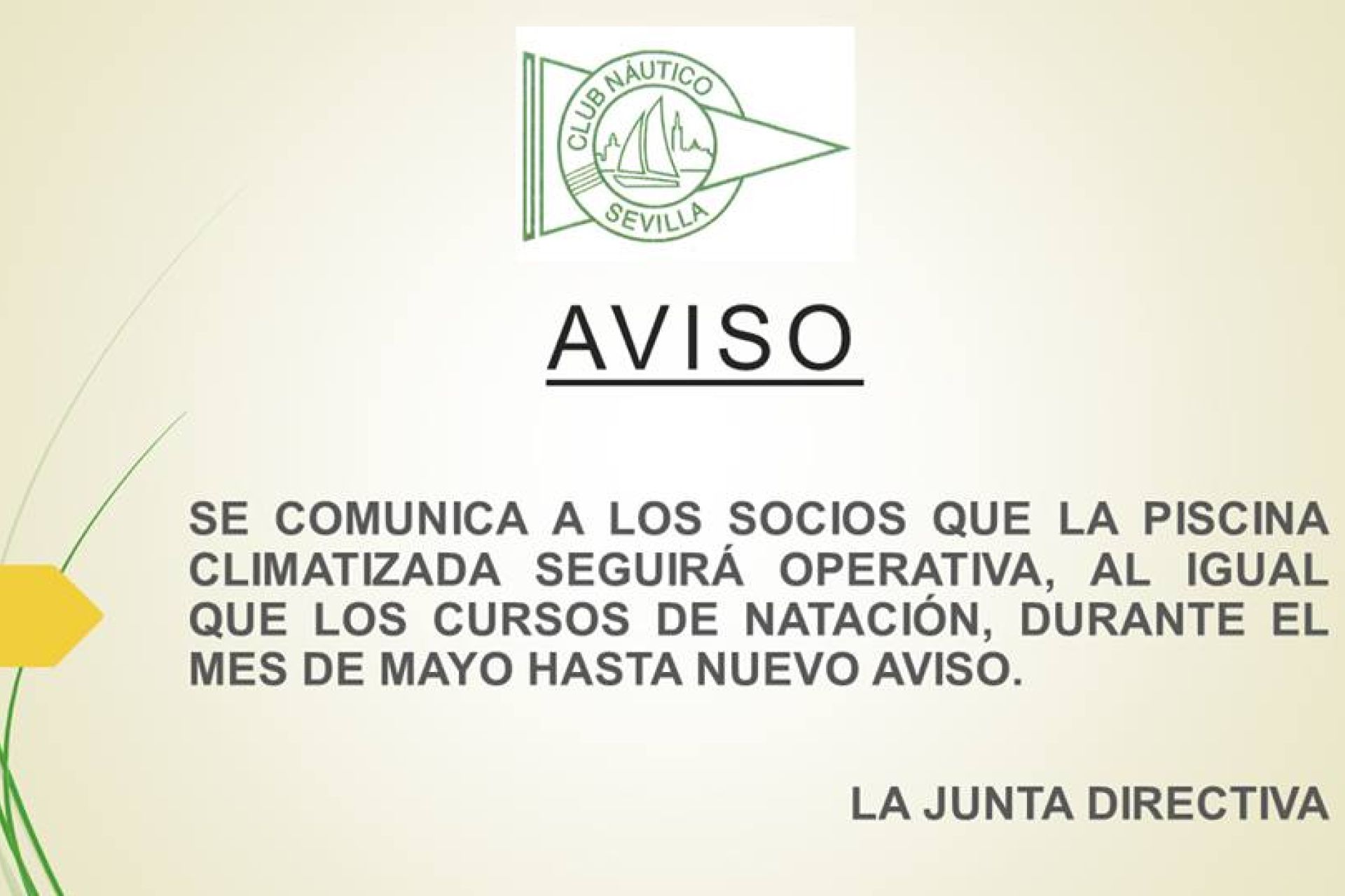 Aviso / Funcionamiento de la piscina climatizada durante el mes de mayo