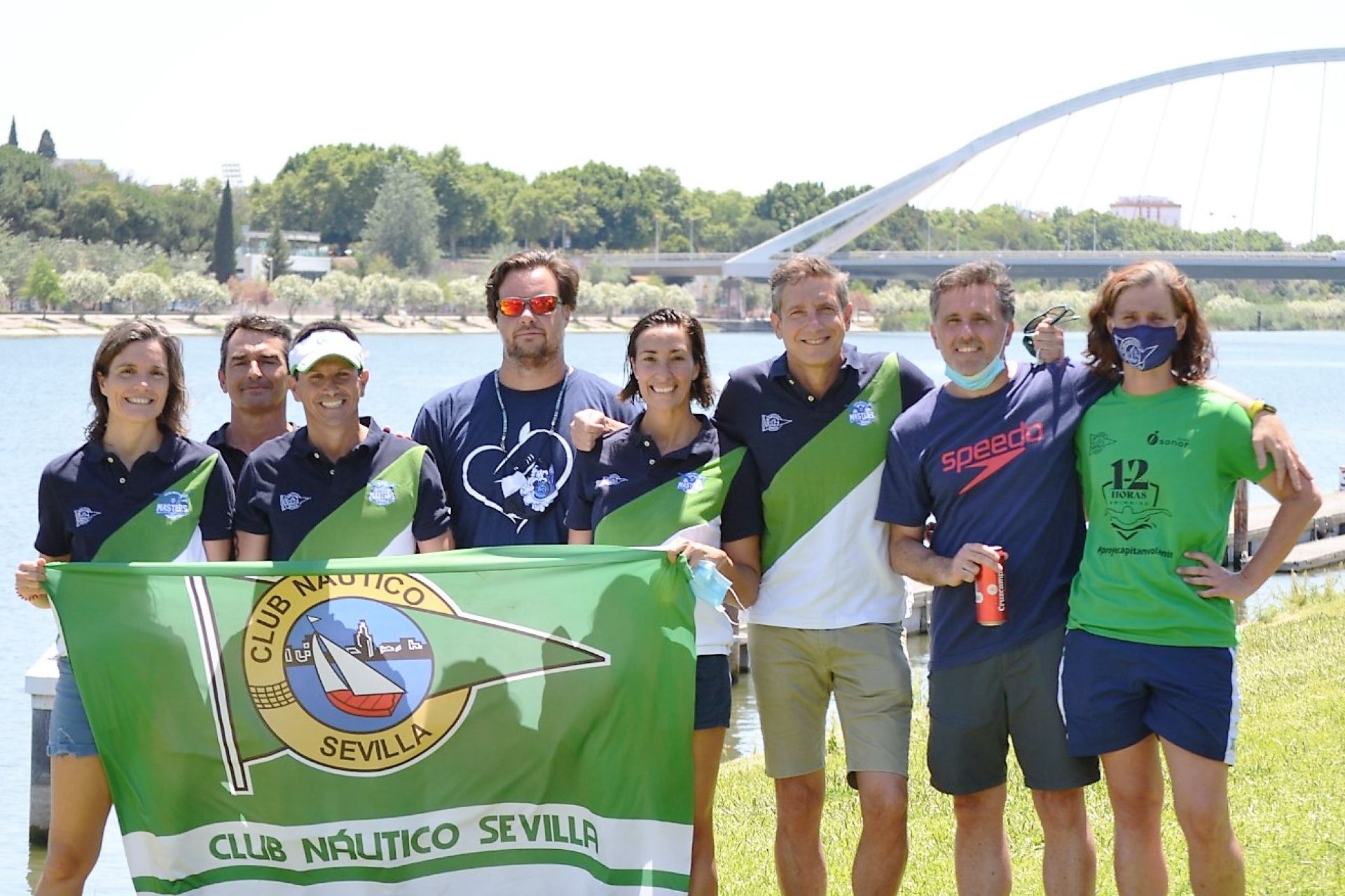 El equipo de veteranos del Club Náutico Sevilla ha participado este pasado fin de semana en el Campeonato de Andalucía de aguas abiertas, que se ha disputado en el Centro Especializado de Alto Rendimiento de la Isla de la Cartuja de Sevilla, en aguas del río Guadalquivir. Lo ha hecho con un total de nueve nadadores, que manteniendo el gran nivel de toda la temporada ha logrado una medalla de oro en las pruebas individuales, desarrolladas sobre 3.000 metros, y un bronce por relevos.