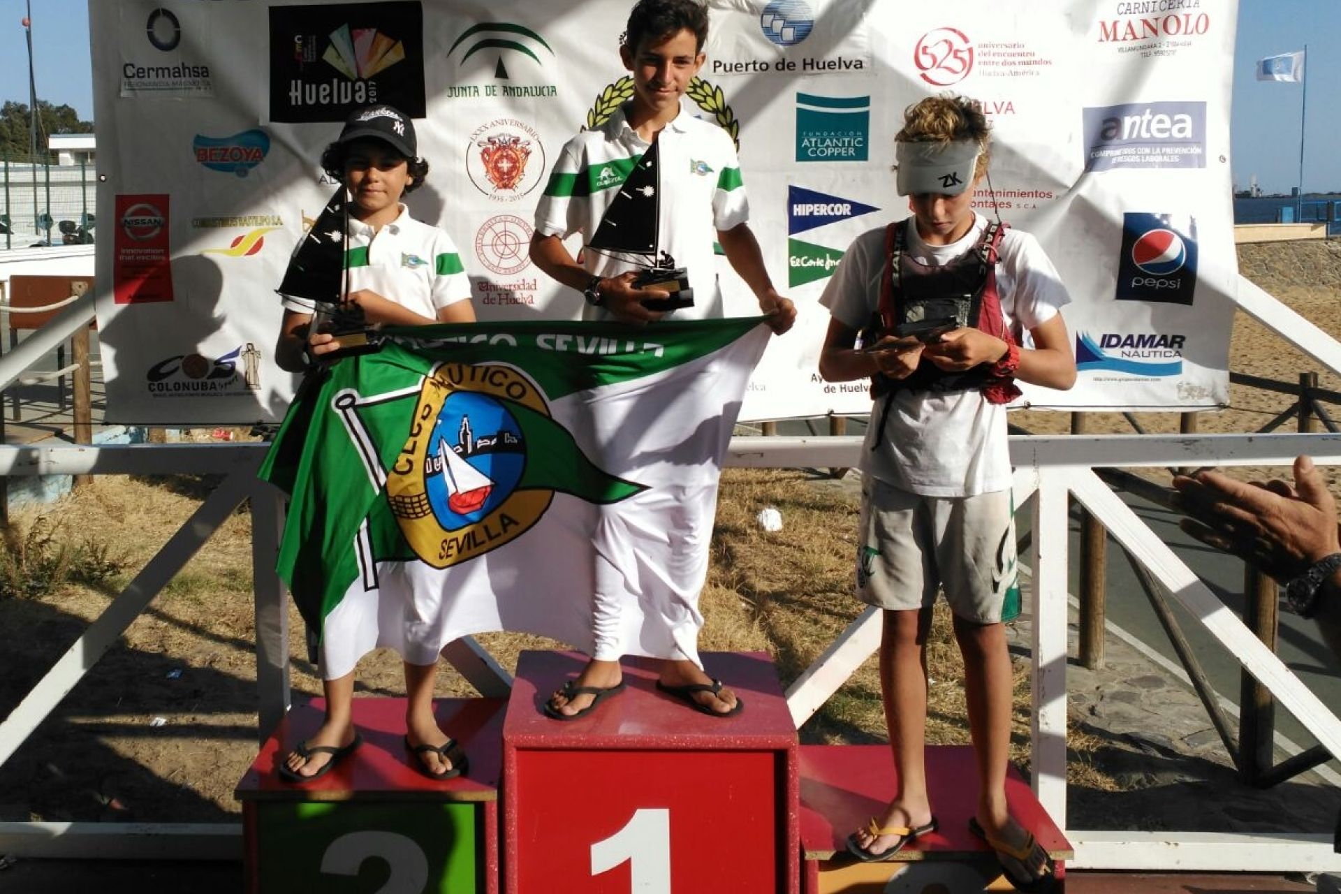 Victoria para el Club Náutico Sevilla por medio de Miguel Muñoz, al que acompañaba en el podio su compañero Jaime Moreno.