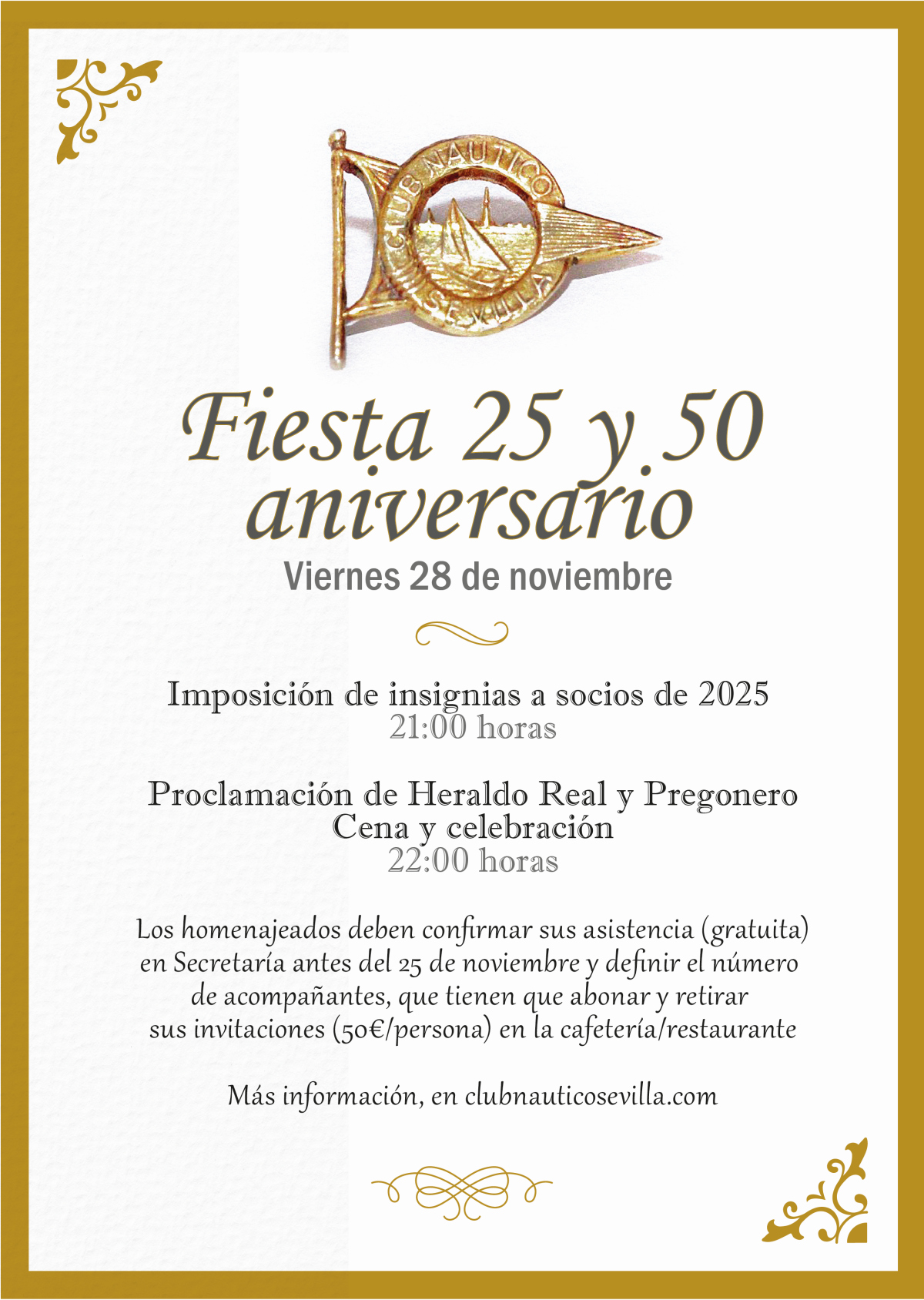 AVISO / Último día de reserva para la Fiesta 25 y 50 aniversario de socios del Club Náutico