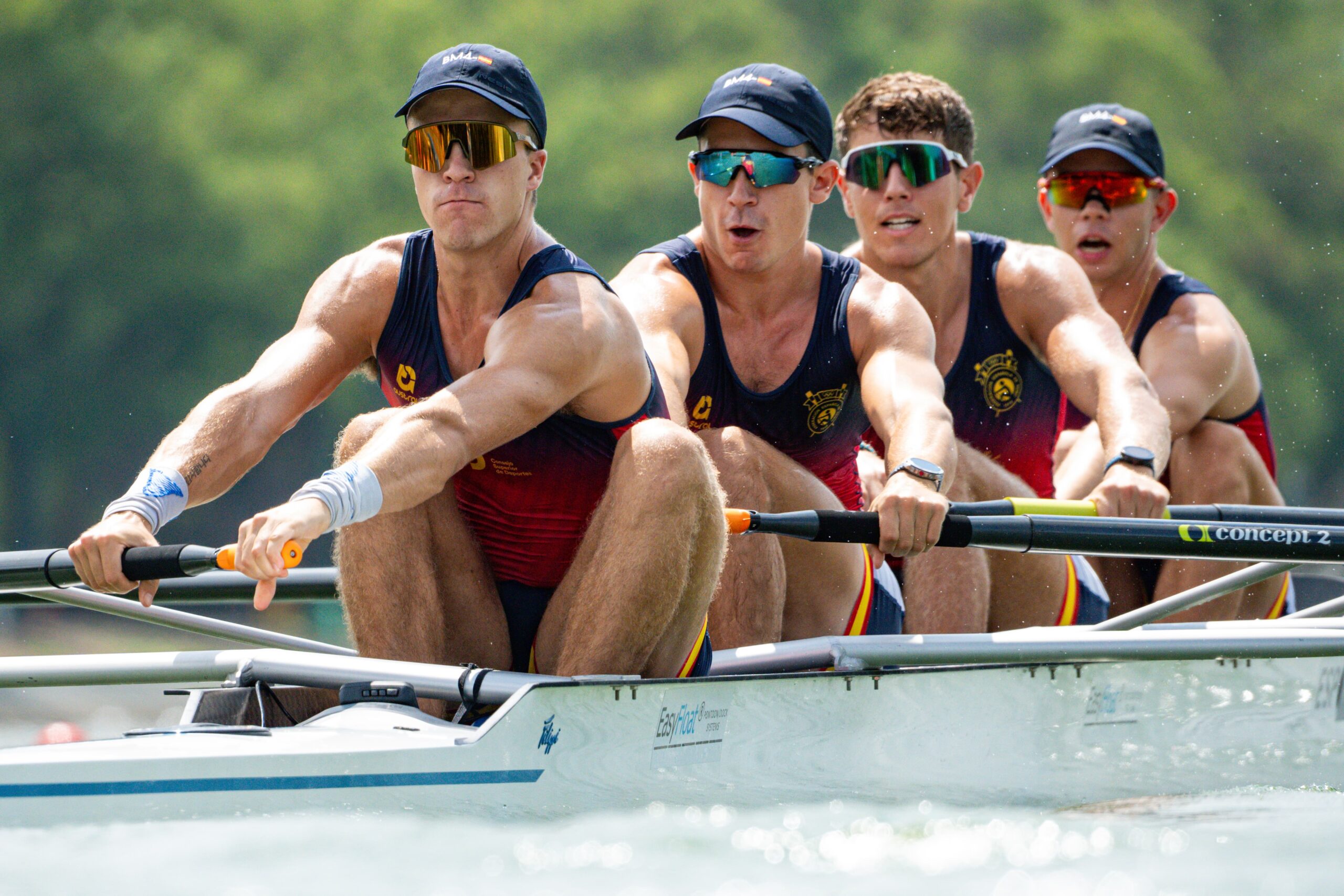 Cuarto igualmente en las series eliminatorias previas, el prometedor bote formado por Jorge Knabe (Club Náutico Sevilla), Juan Miguel Palomino (Real Círculo de Labradores), Eric Pastor (Club de Rem Tortosa) y Pau Sánchez (Club Nautic Amposta), que con un solo cambio acudía a Shanghai tras lograr el subtítulo mundial sub23 esta misma temporada, cubría la prueba en un tiempo de 6:09.98 tras posicionarse entre los dos mejores al paso por el primer 500 e ir cediendo puestos, aunque manteniéndose siempre en la lucha cabecera. Por delante, la victoria era para la República Checa en foto-finish con Dinamarca (6:06:95 y 6:06.99), seguidas por Alemania (6:08.40). Y por detrás de España, entraban descolgados Canadá (6:13.20) y China (6:18.68)