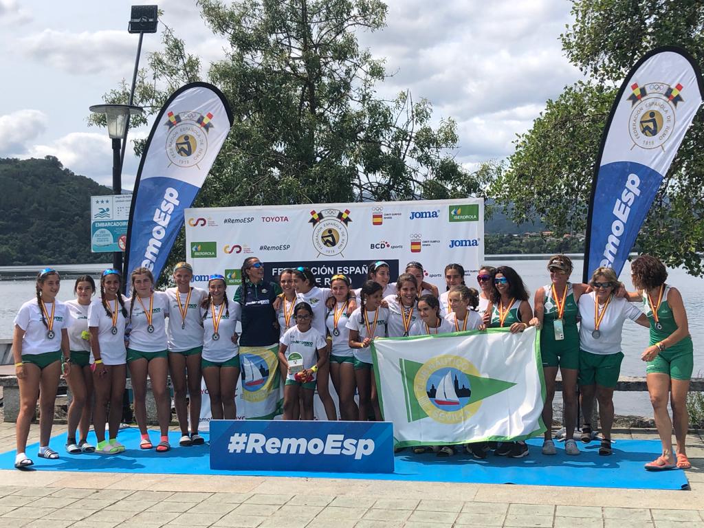 El Club Náutico Sevilla se ha erigido en el gran protagonista de los Campeonatos de España de remo olímpico de las categorías alevín, infantil y veterano, disputados este fin de semana en Castrelo de Miño (Orense) con la presencia de 79 clubes de 10 comunidades autónomas. De hecho, ha liderado los medalleros tanto de la competición de base como de veteranos, logrando de paso el Trofeo Iberdrola al mejor club en categoría femenina.