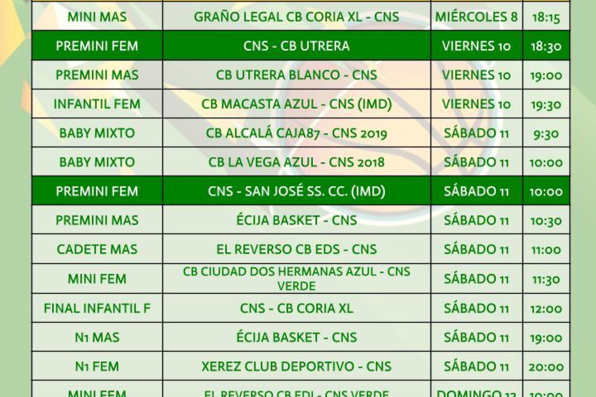 Agenda de la sección de baloncesto del Club Náutico