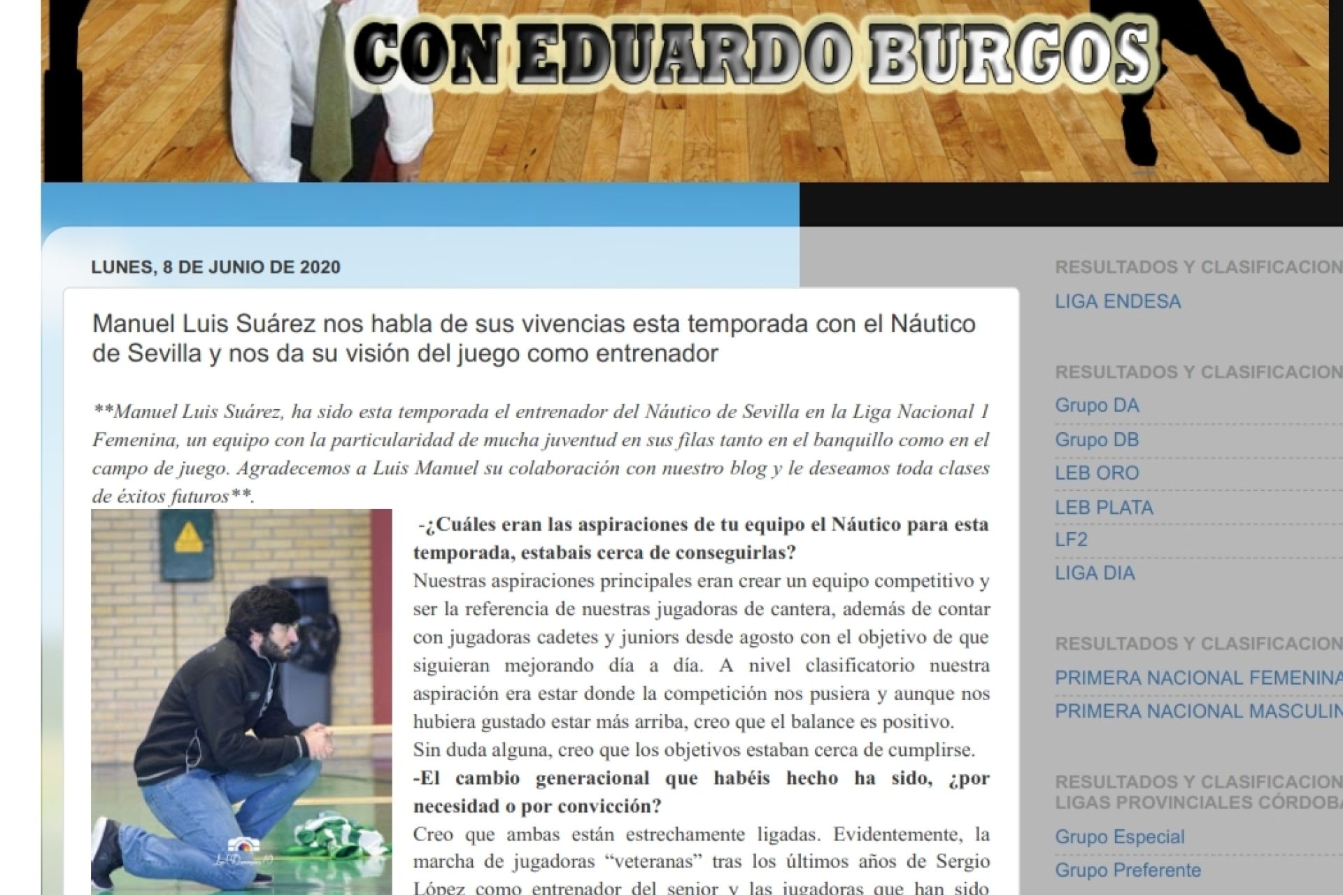 Entrevista al técnico del equipo sénior femenino del Club Náutico, militante en Primera Nacional, publicada en el portal especializado Viveelbasket.blogspot.com. Por Eduardo Burgos.