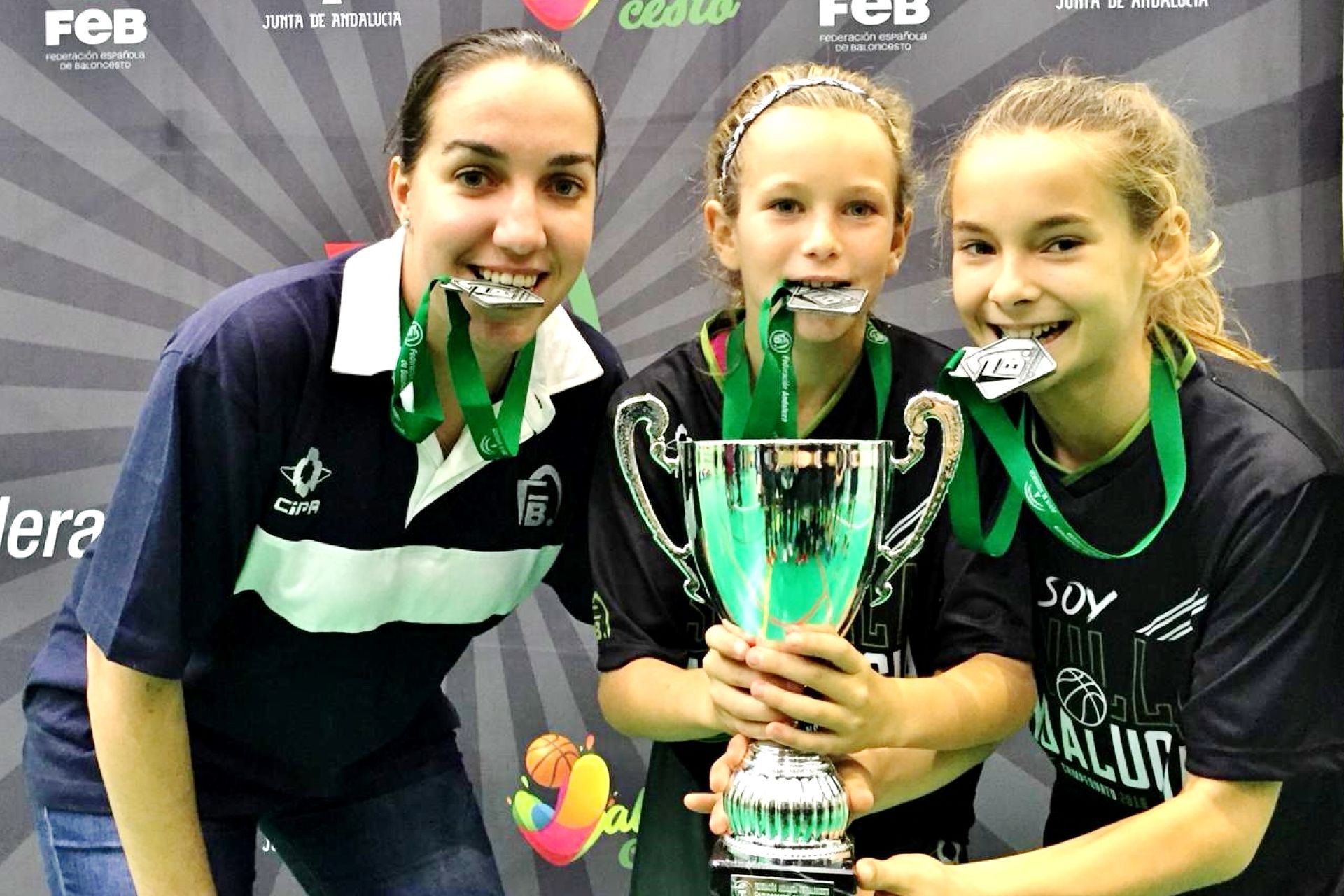 Subtítulo autonómico para el combinado sevillano de las jugadoras del Club Náutico Mar Segura y Blanca Fernández, acompañadas en Mijas (Málaga) por la entrenadora Ana Pereira.