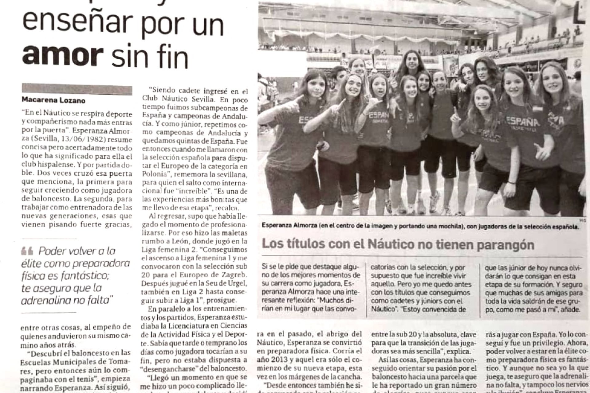 Reportaje publicado en ‘Diario de Sevilla’ sobre la exjugadora internacional de baloncesto del Club Náutico, actual preparadora fisica de la sección y los equipos nacionales femeninos de base. Por Macarena Lozano.