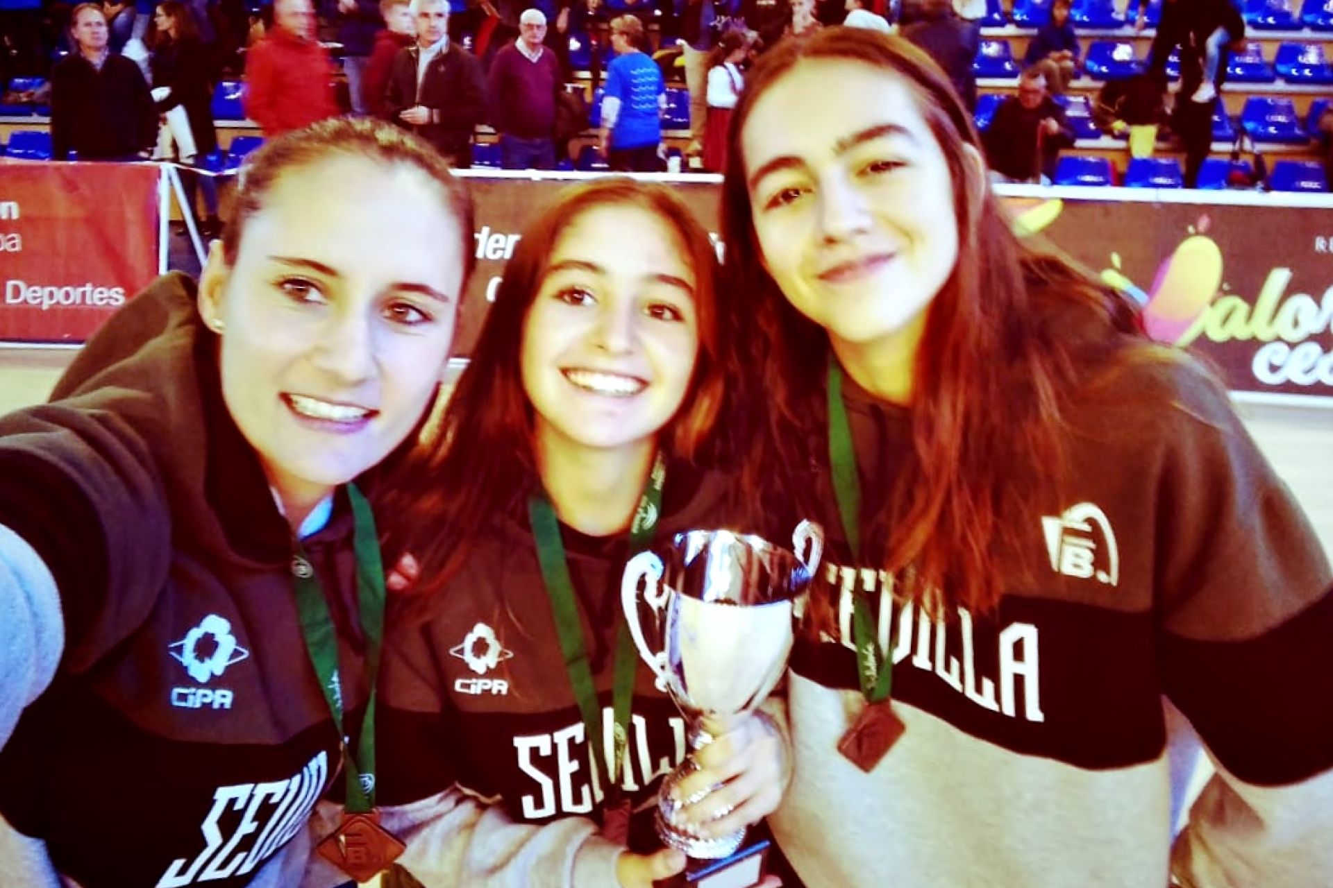 Medalla de bronce en Córdoba con la selección sevillana para las jugadoras del Club Náutico Lourdes Otero y Aitana Prieto y la entrenadora Paula Pérez.