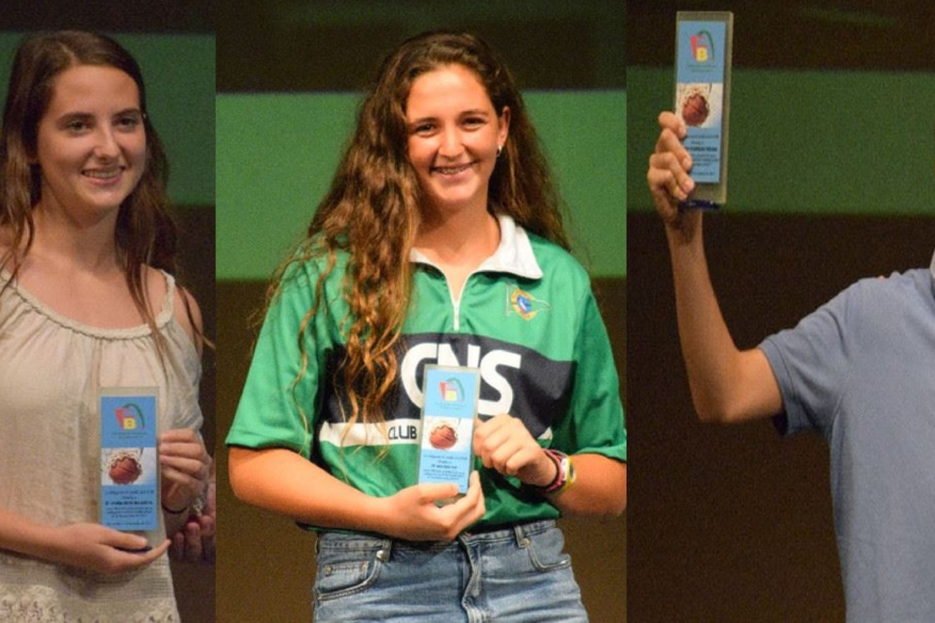 Los jugadores del Club Náutico Nuria Ríos, Inés Ríos y Javier Rodríguez, MVP de la temporada provincial en las categorías júnior, cadete y minibasket / ÁLBUM DE FOTOS