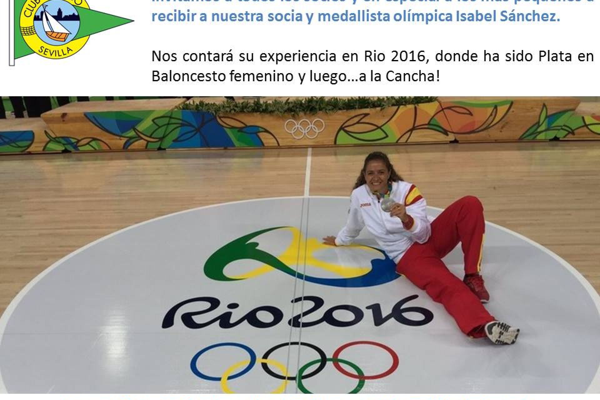 Este jueves, 15 de septiembre, tendremos el honor de recibir una visita muy especial, Isa Sánchez, mostrando una vez más su cercanía y simpatía con la sección de baloncesto y el Club Náutico Sevilla. En su visita al Club compartirá con todos los jugadores y socios su experiencia en los pasados Juegos Olímpicos de Rio 2016, mostrando su medalla de plata.