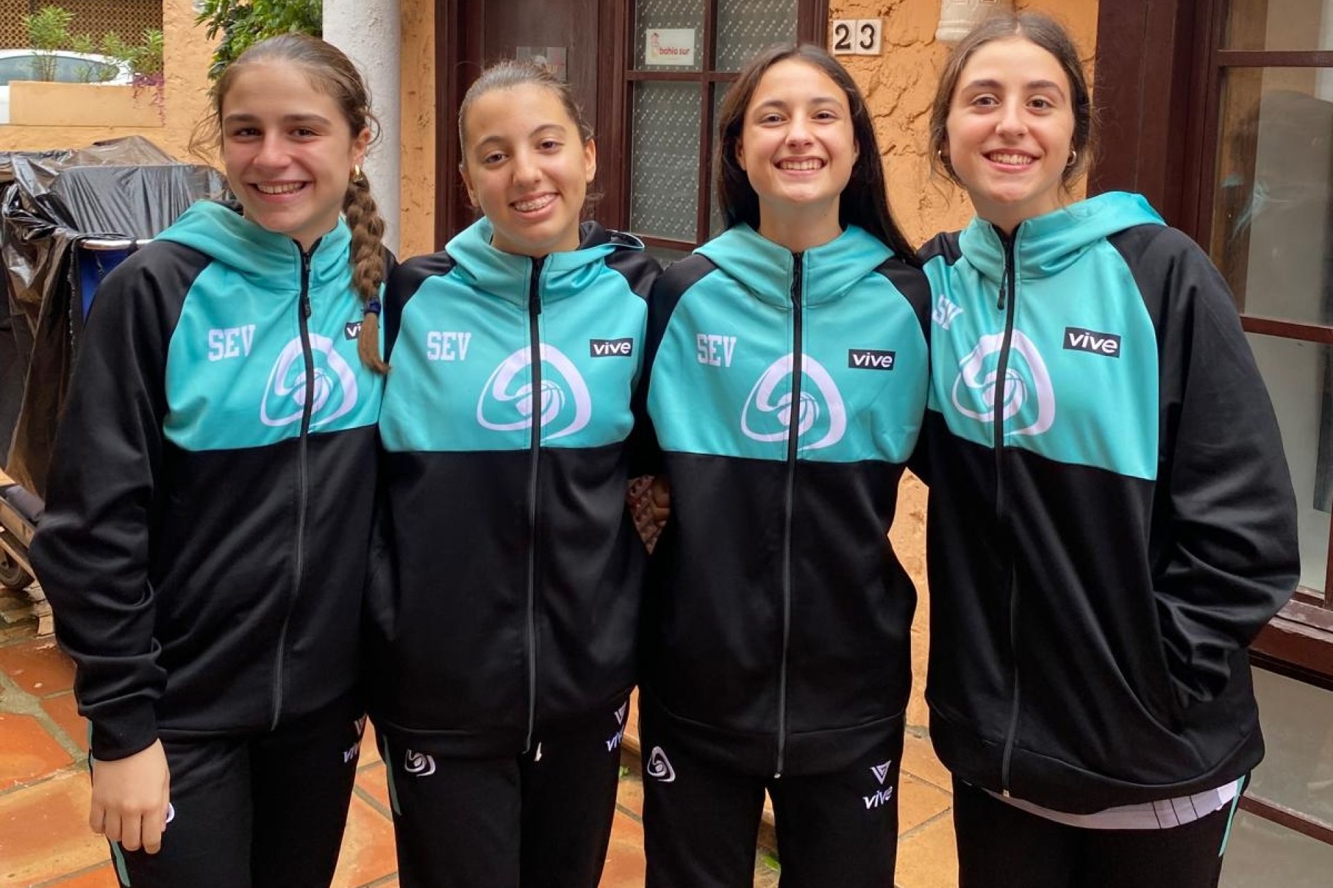 Séptima plaza en Almuñécar (Granada) con el combinado de Sevilla cadete para las jugadoras del Club Náutico Alicia Camacho, Clara y Mar González, Sofía Pallarés, Adriana Schutte y Macarena Taudín.