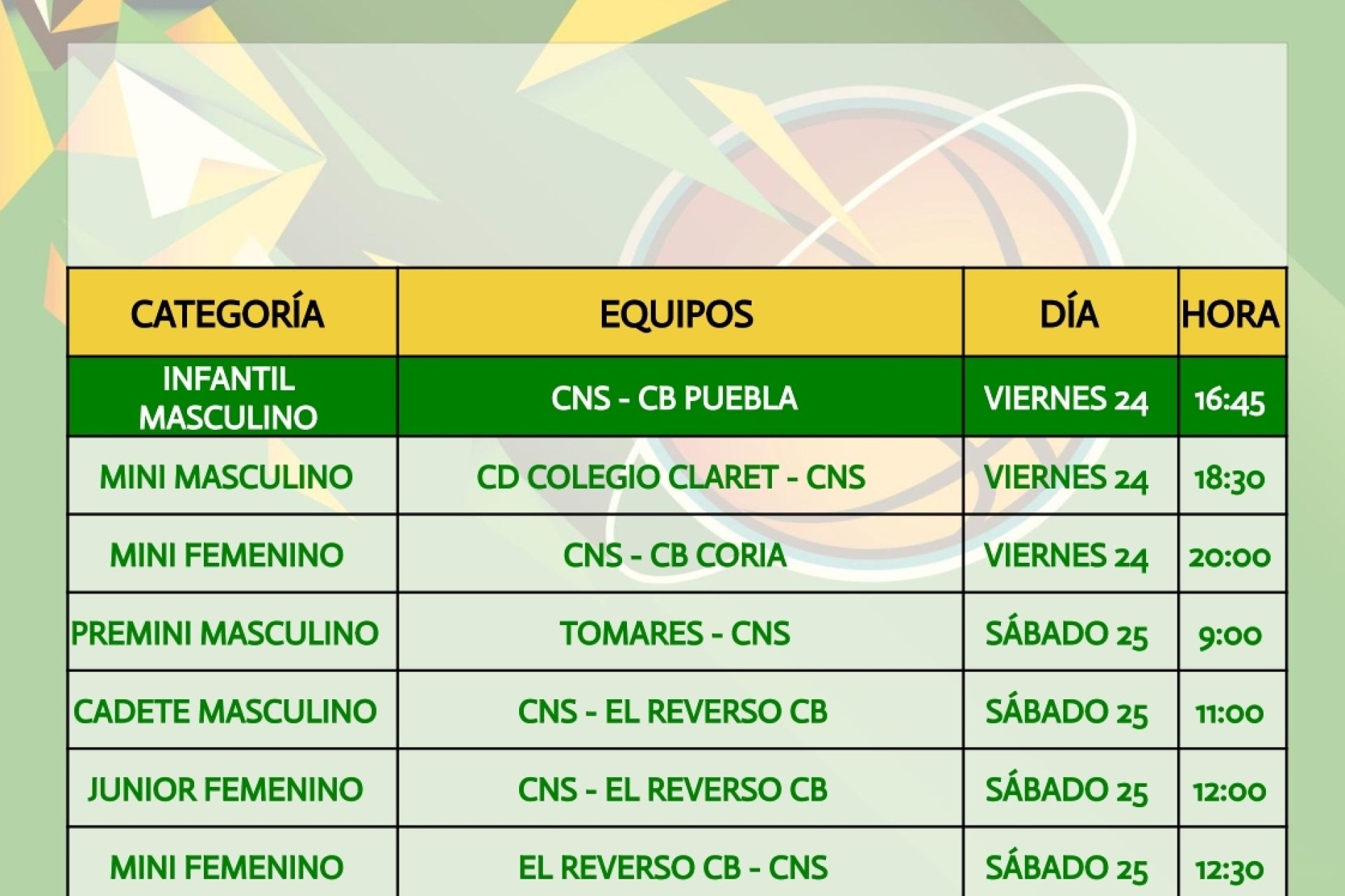 Agenda de la sección de baloncesto