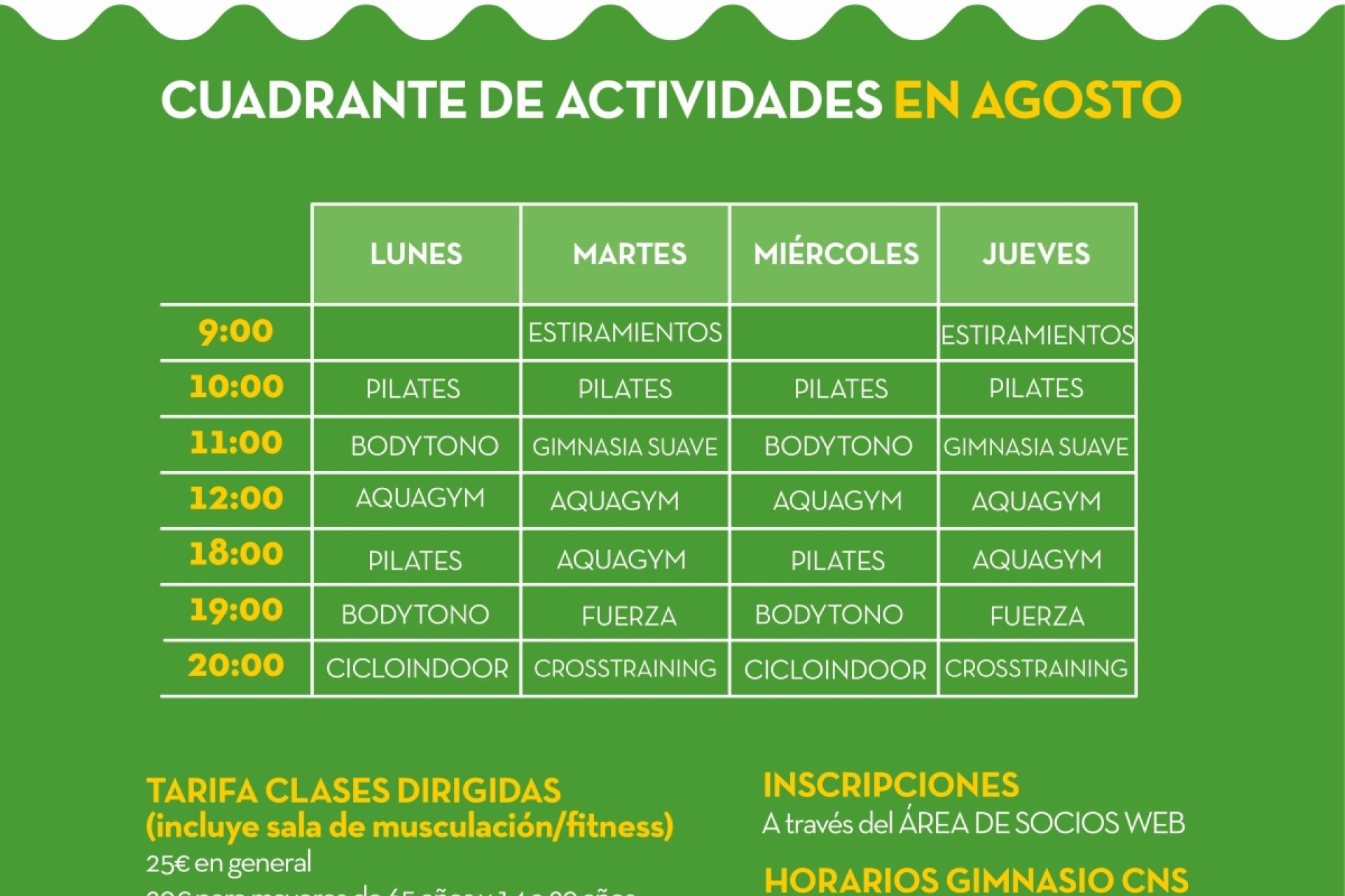 Actividades dirigidas del gimnasio en agosto
