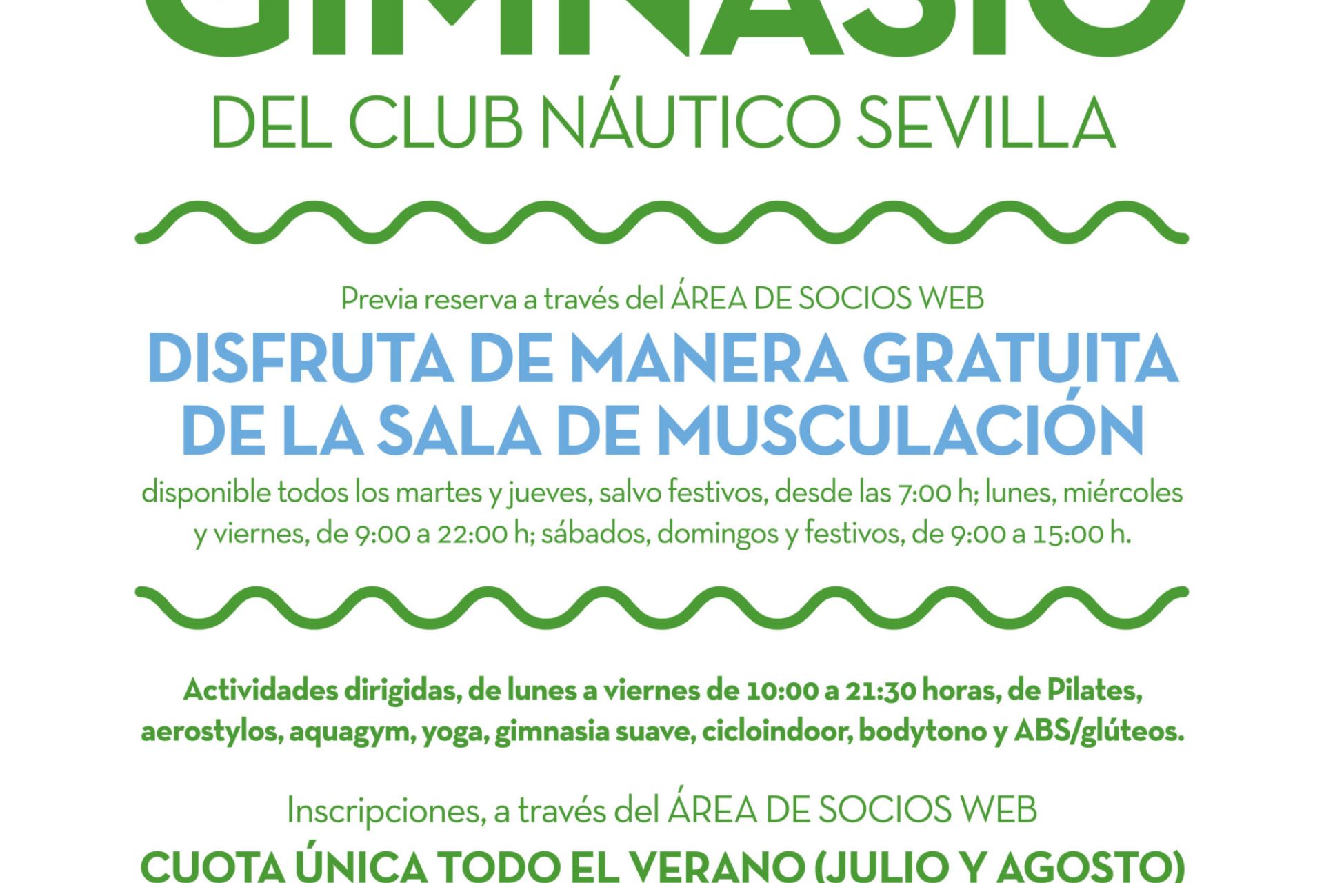 Desde el próximo lunes, día 25 de julio, los socios del Club Náutico podrán acceder de forma libre y sin necesidad de reservar previamente a la sala de musculación y las calles para nado deportivo de las piscinas olímpica y de 25 metros.