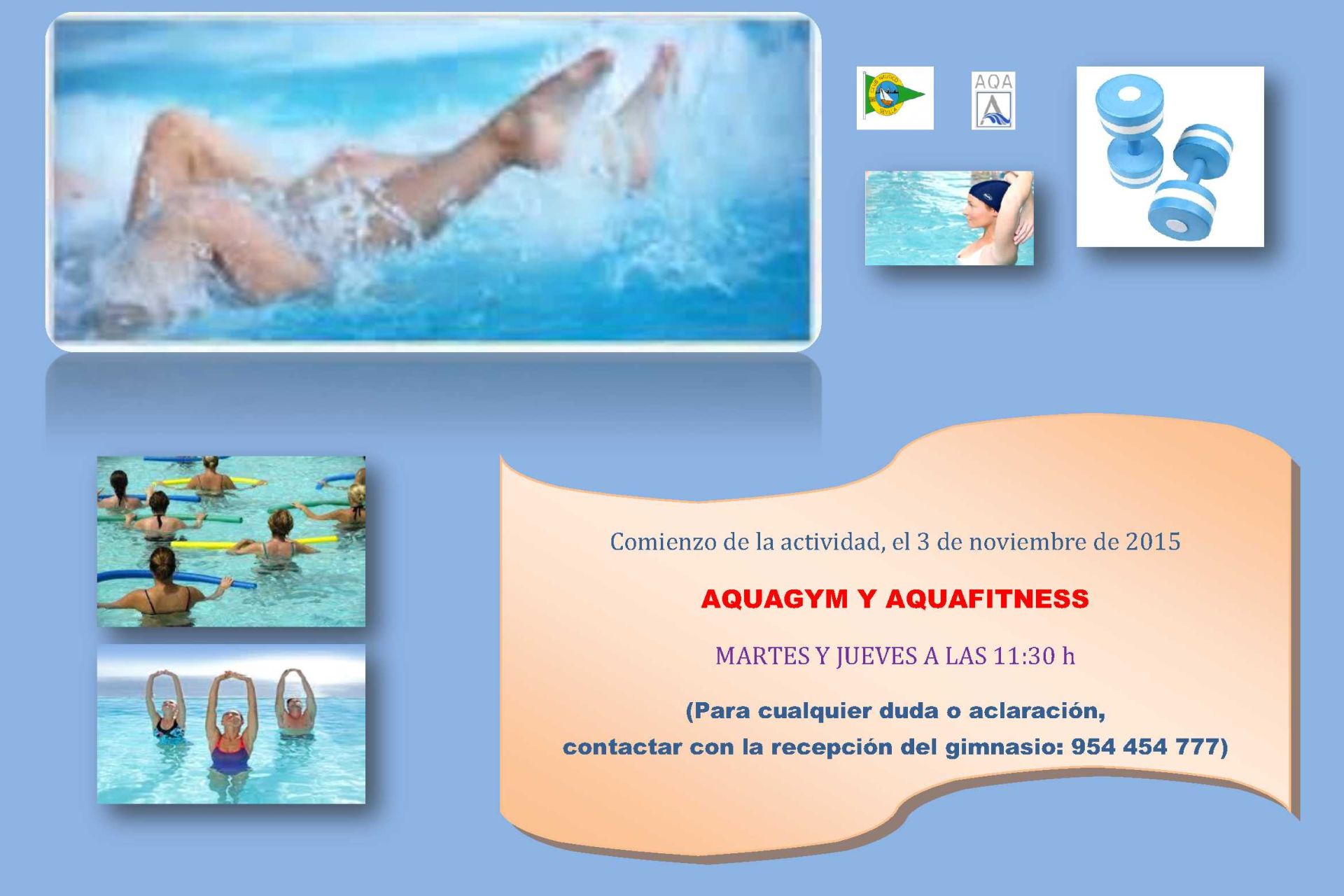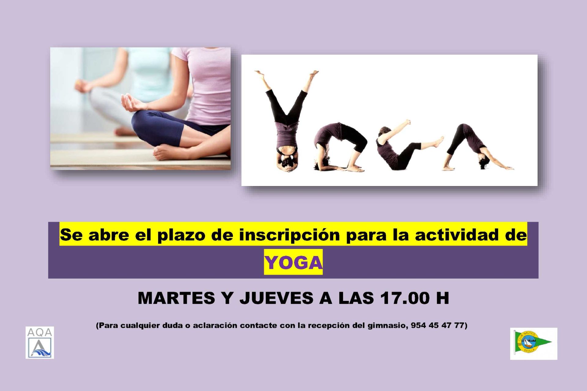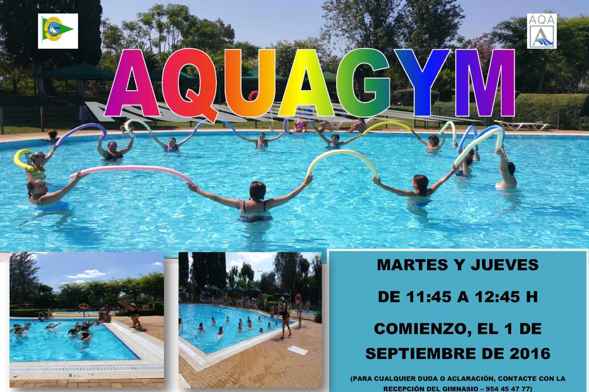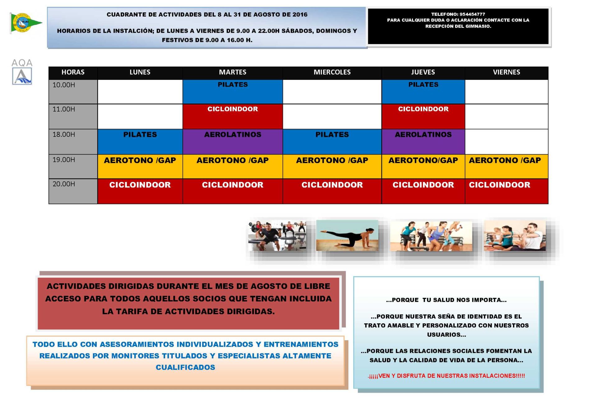Desde el próximo lunes, día 18 de julio, y hasta el 15 de septiembre de 2016, en horario de 14:00 a 16:00, todos los Socios Numerarios, de Honor y Fundadores del Club Náutico Sevilla podrán acceder de forma libre al gimnasio AQA Club Náutico Fitness Center durante la franja horaria señalada.