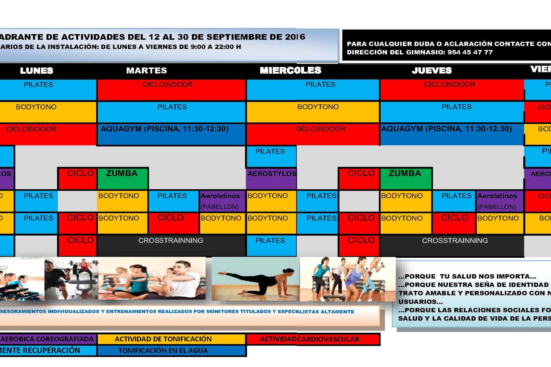 Actividades / horarios del gimnasio del 12 al 30 de septiembre
