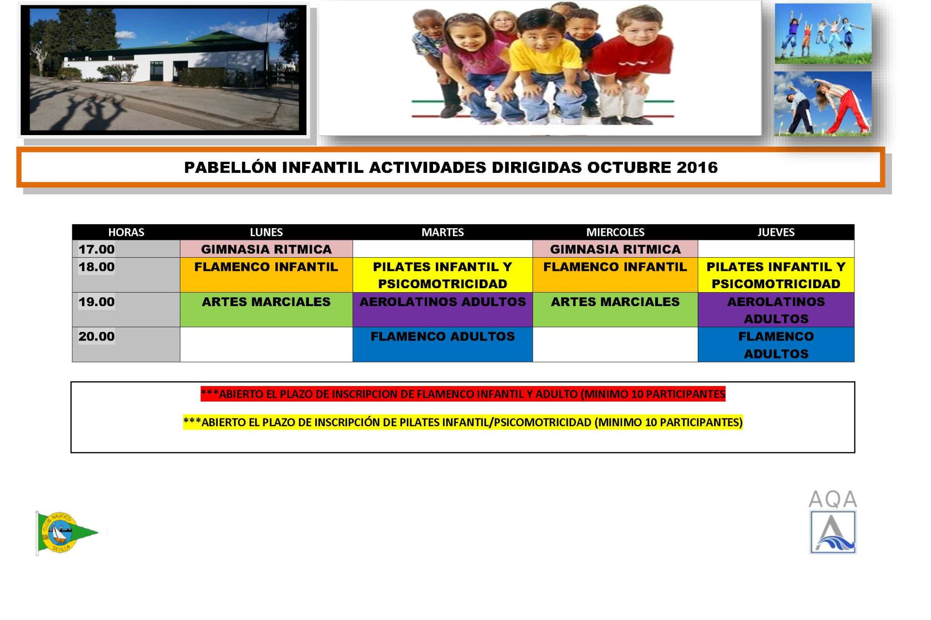 Martes y jueves a las 17:00 horas. Abierto el plazo de inscripción.