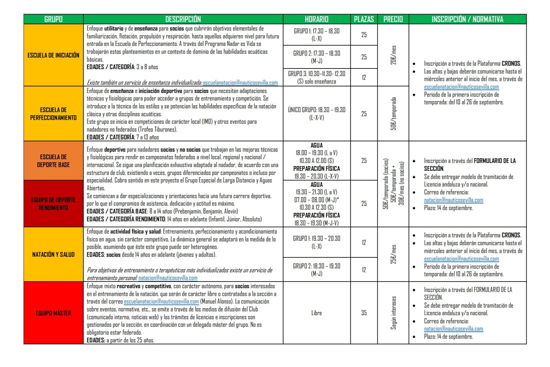 Más información y cita, en natacion@nauticosevilla.com
