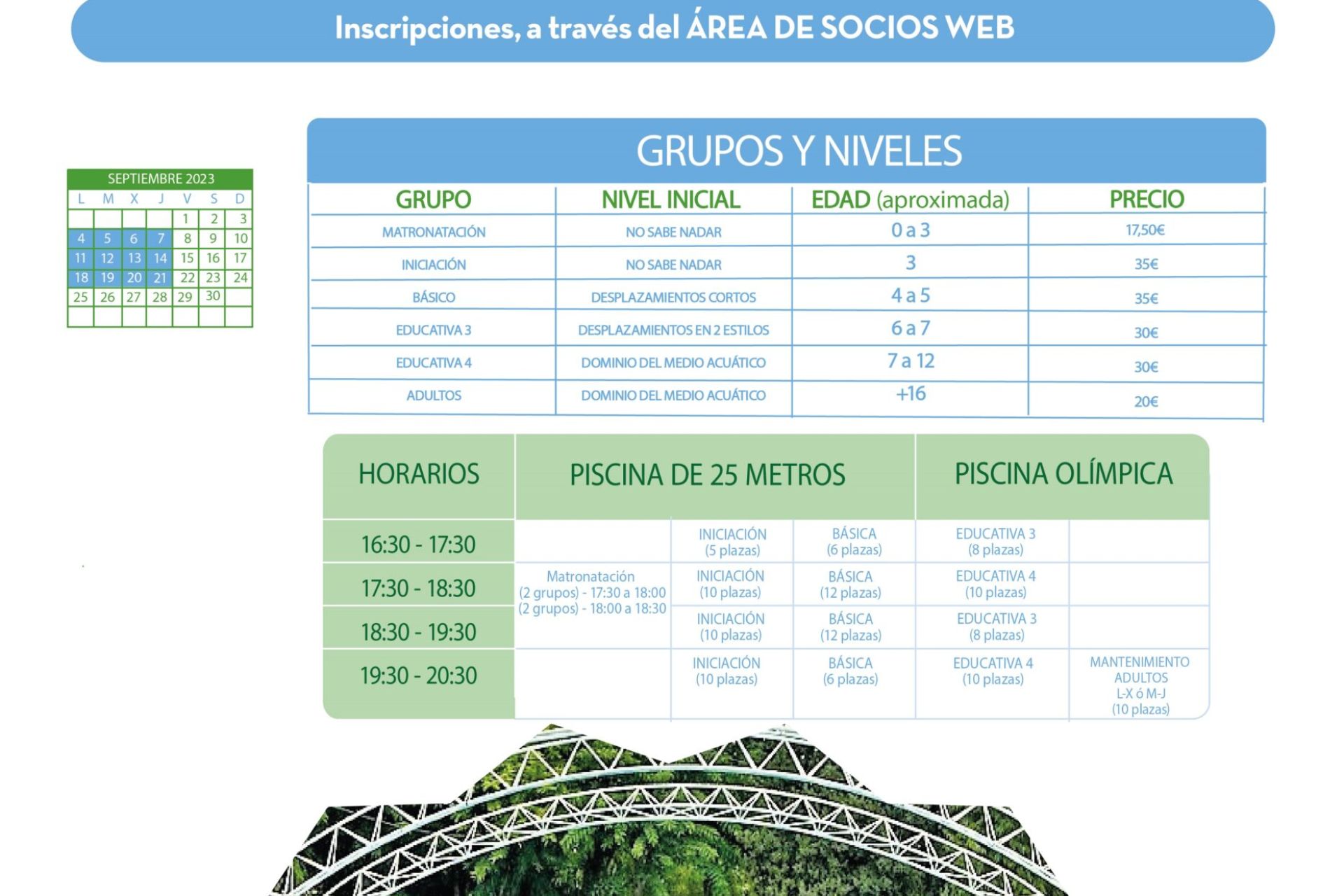 Cursos trimestrales de natación para todas las edades y niveles a celebrar del 16 de octubre al 22 de diciembre. Inscripciones, a partir del 2 de octubre a través del ÁREA DE SOCIOS WEB. Se habilitará lista de espera en el caso de que se agoten las plazas para cubrir posibles vacantes.