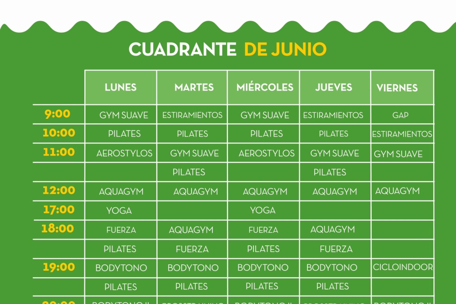 Actividades dirigidas del gimnasio en junio