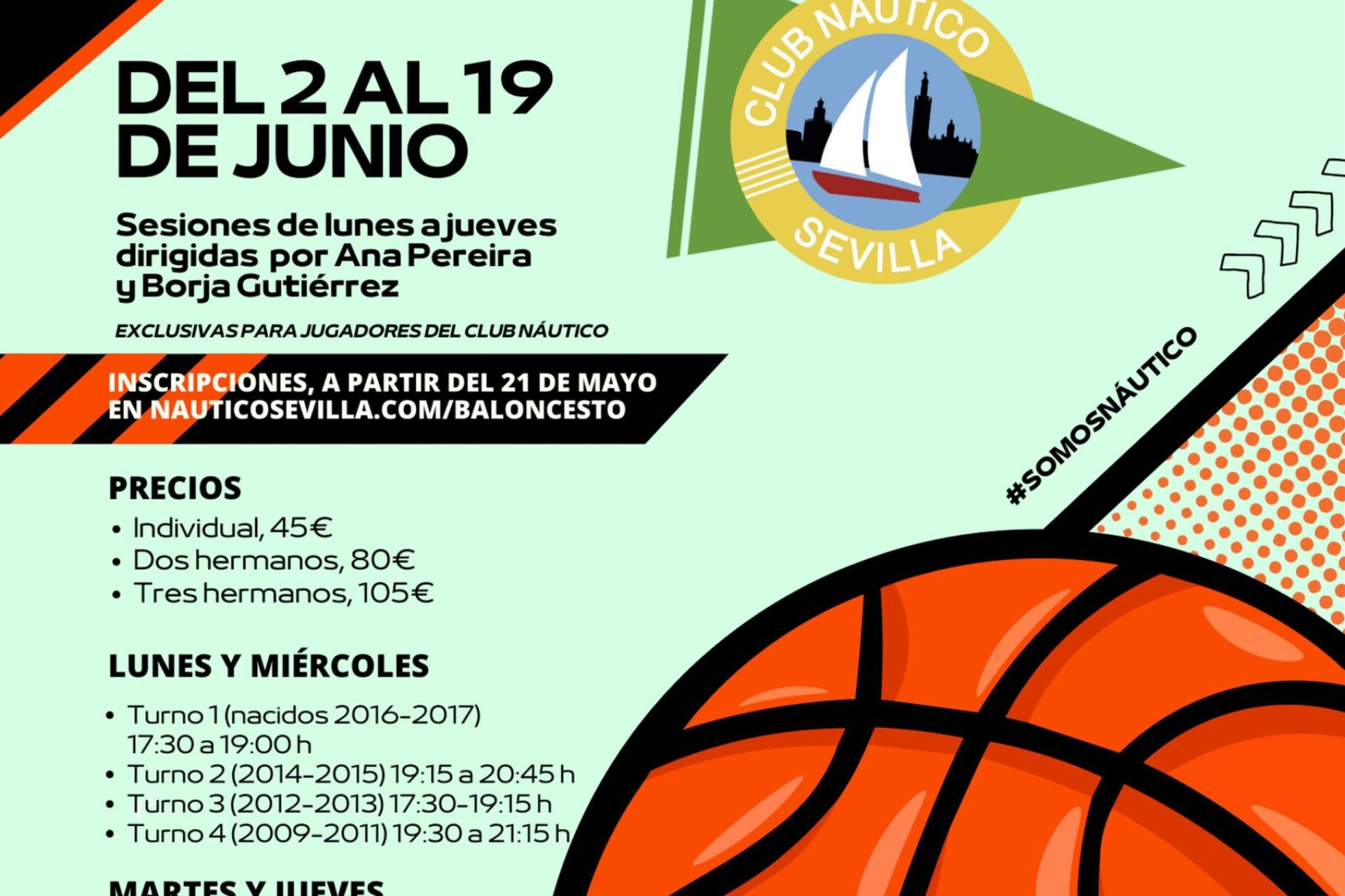 Mejora tu 1x1 en sesiones de entrenamientos exclusivas para jugadores del Club Náutico a celebrar de lunes a jueves del 2 al 19 de junio bajo la dirección de Ana Pereira y Borja Gutiérrez. Inscripciones, a través de formulario web. Inscripciones, por orden de reserva, habilitándose lista de espera en el caso de que se agoten las plazas para cubrir posibles vacantes.