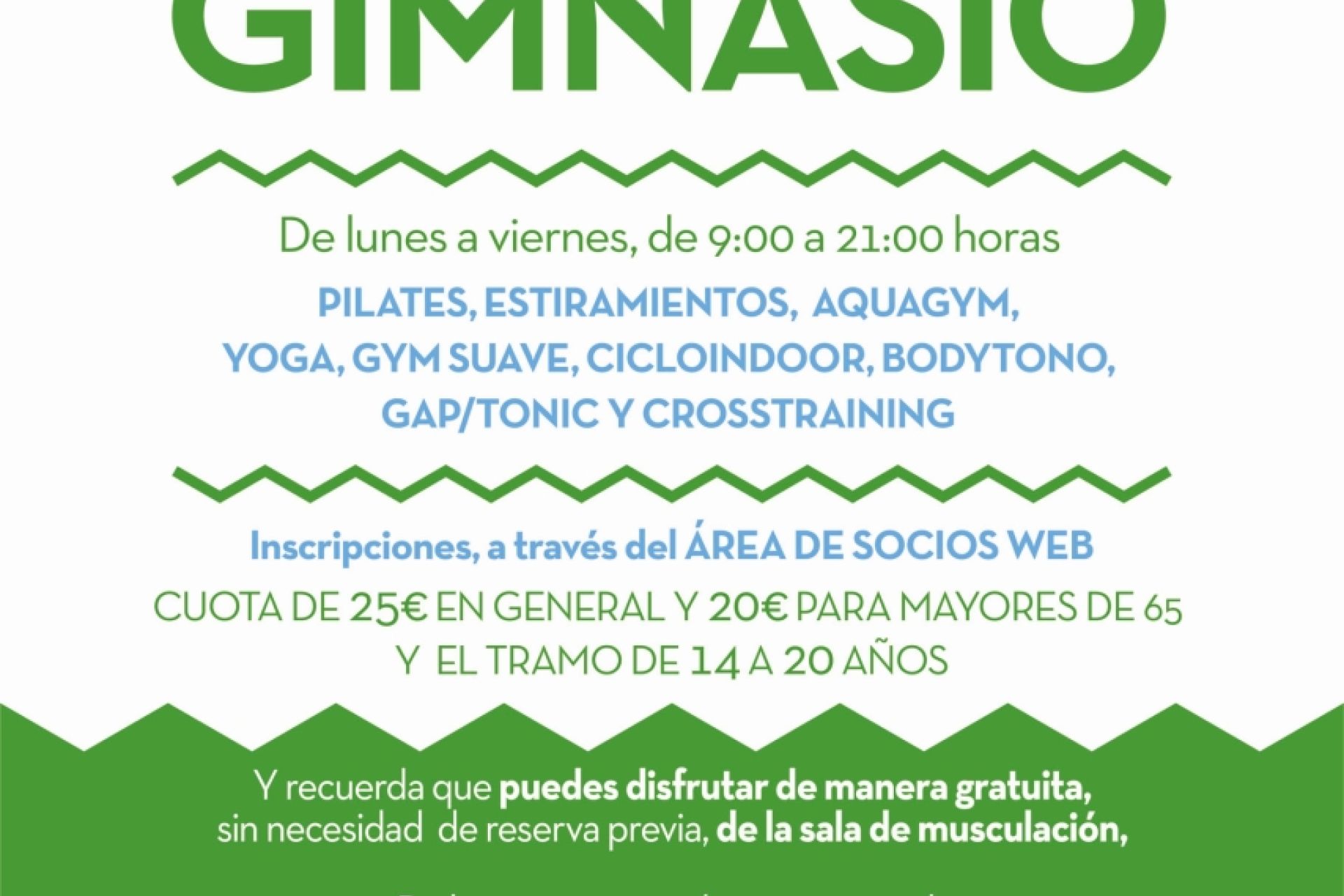 De lunes a viernes de 9:00 a 21:00 horas, clases de Pilates, estiramientos, gimnasia suave, aquagym, GAP/tonic, yoga, cicloindoor, bodytono y crosstraining.