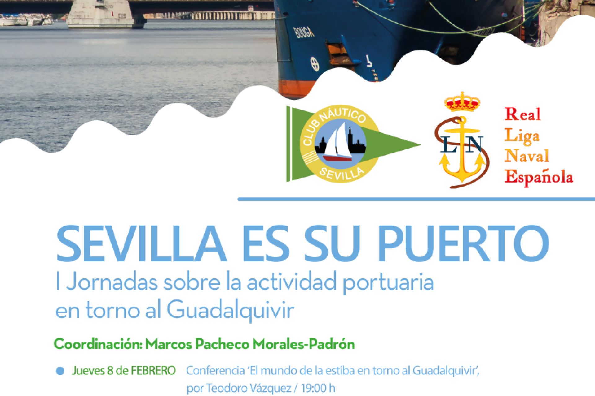 Organizadas por el Club Náutico Sevilla y la Real Liga Naval Española bajo la coordinación de Marcos Pacheco Morales-Padrón, con un ciclo de tres conferencias a celebrar en los salones sociales del Náutico los días 8, 15 y 22 de febrero y una mesa redonda de clausura el 7 de marzo. Colaboran, Puerto de Sevilla, Sevitrade, ProSevillaPort y WWF.