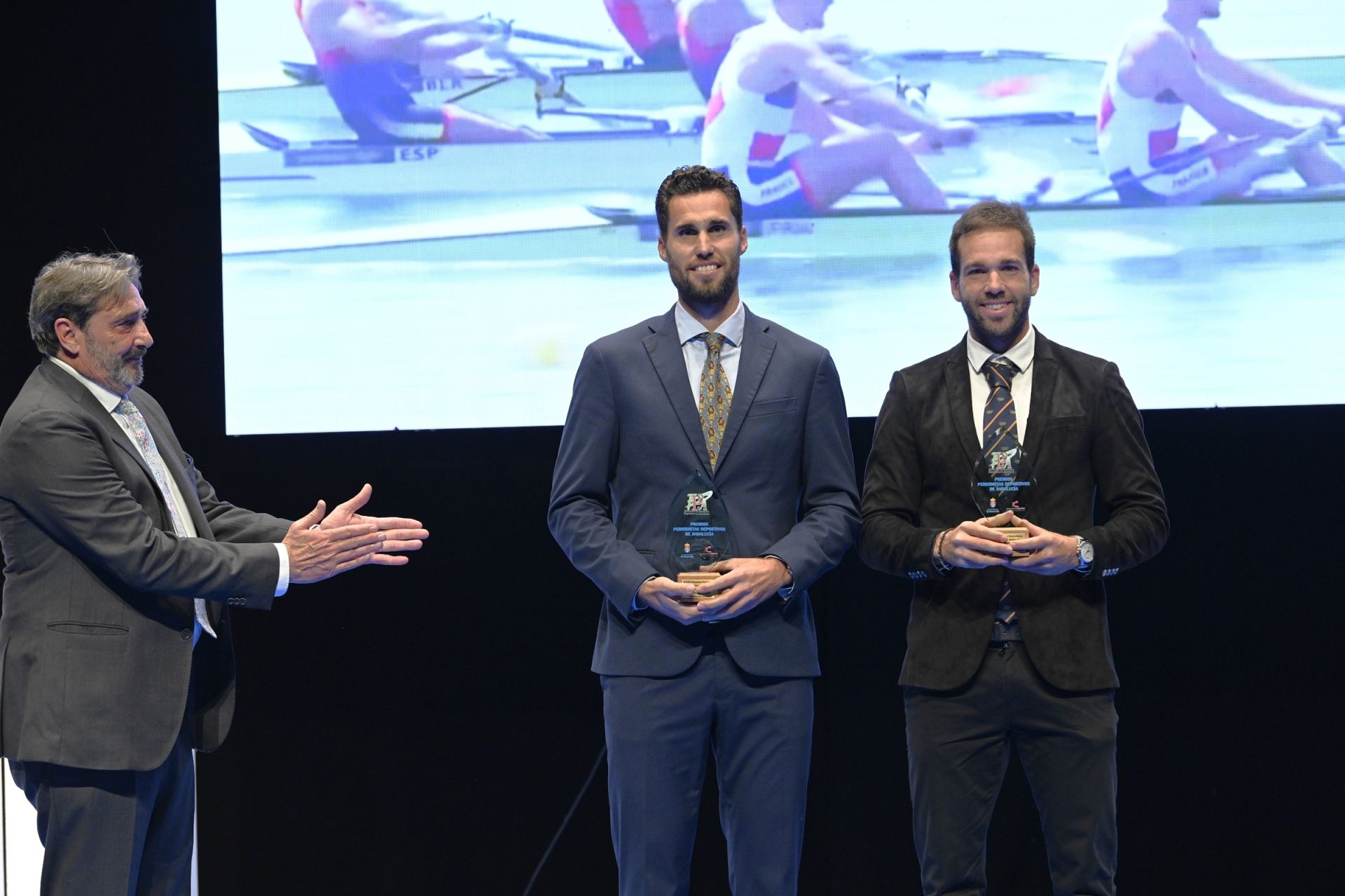 Los subcampeones mundiales de remo y diploma olímpico del Club Náutico Sevilla Jaime Canalejo y Javier García, distinguidos en La Rinconada entre las ‘Gestas deportivas’ del pasado año por sus éxitos internacionales y la clasificación para los Juegos de París.