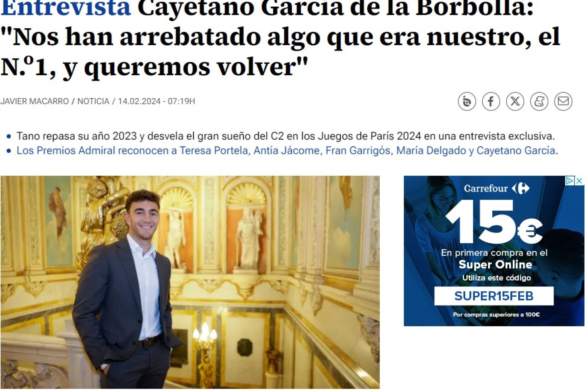 Entrevista realizada en 20 Minutos al Socio de Honor del Club Náutico Sevilla, distinguido en los Premios Admiral como mejor deportista nacional sub23 de la pasada temporada.