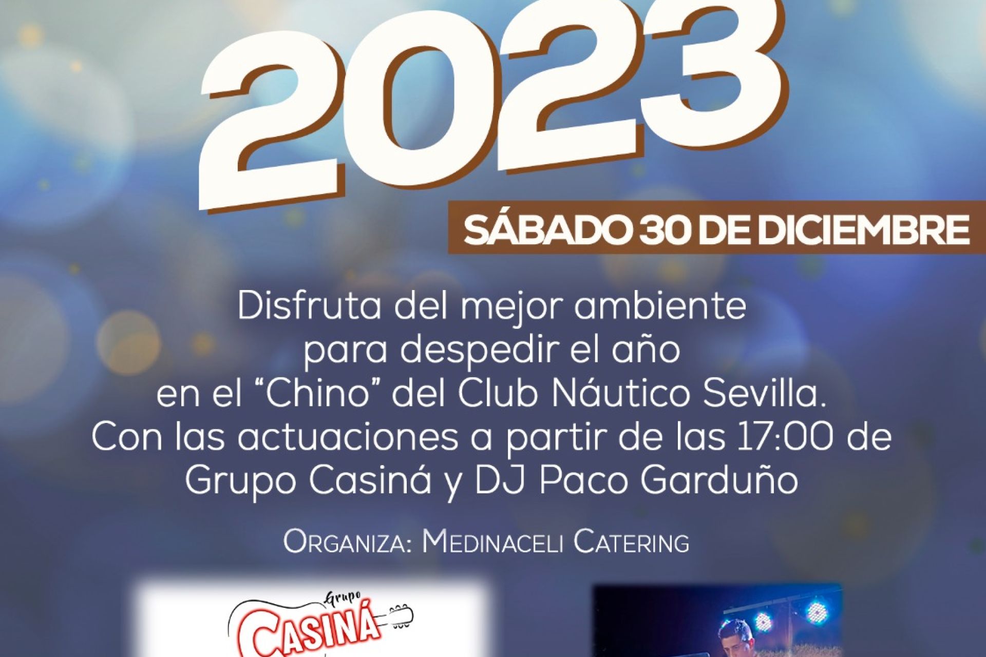 El sábado 30 de diciembre, despide el año en el Bar Chino a partir de las 17:00 horas con las actuaciones del Grupo Casiná y el DJ Paco Garduño y la opción excepcional de hasta cuatro invitados por socio.