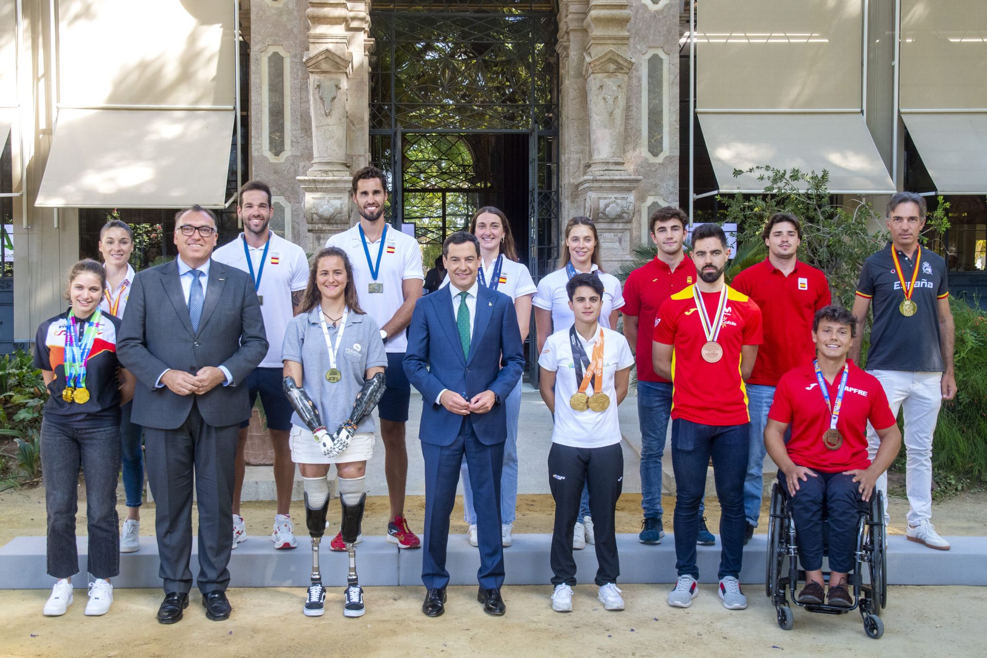 Entre los medallistas internacionales distinguidos con la bandera de Andalucía en el Palacio de San Telmo se encontraban los representantes del Club Náutico Sevilla Jaime Canalejo, Javier García, Pablo Martínez y Cayetano García de la Borbolla.