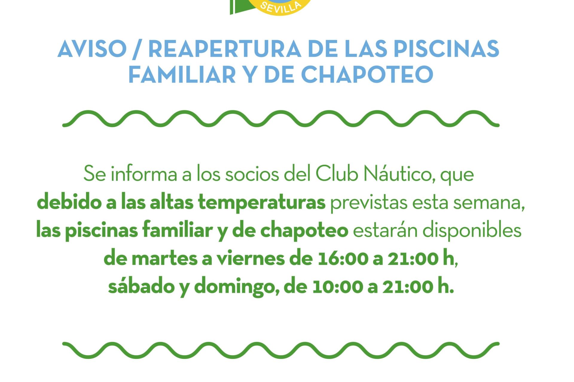 AVISO / Reapertura de las piscinas familiar y de chapoteo